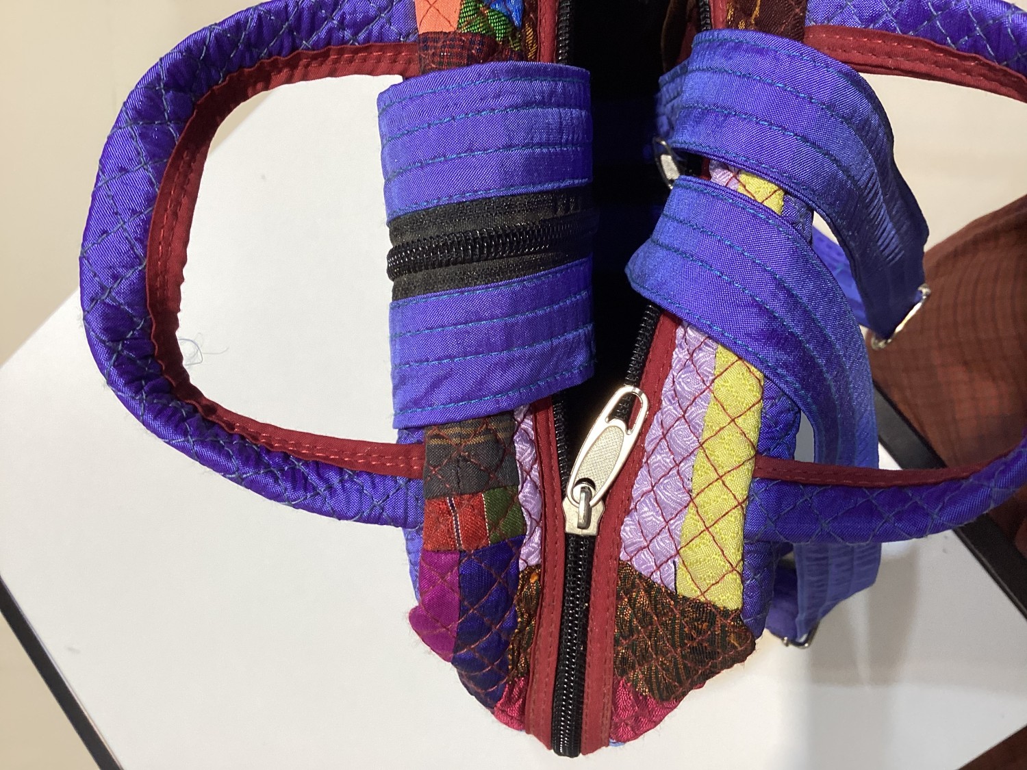 กระเป๋าสะพายหลัง 20*20 cm มีช่องไว้ใส่ของช่องใหญ่ 1 ช่อง ช่องเล็ก 2 ช่อง เป็นผลิตภัณฑ์แปรรูปจากผ้าไหม