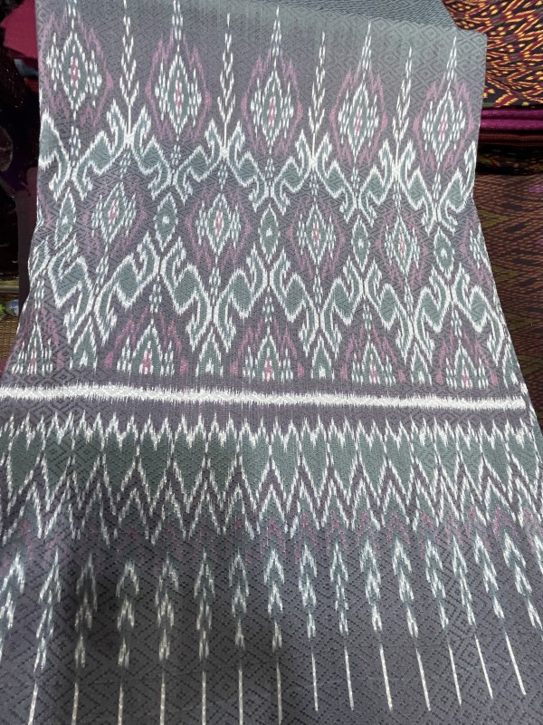 ผ้าไหมย้อมสีธรรมชาติ ทอยกดอกลายลูกแก้ว โทนสีเขียวสไลน์เชิงนาคน้อย ขนาด1*2 เมตร