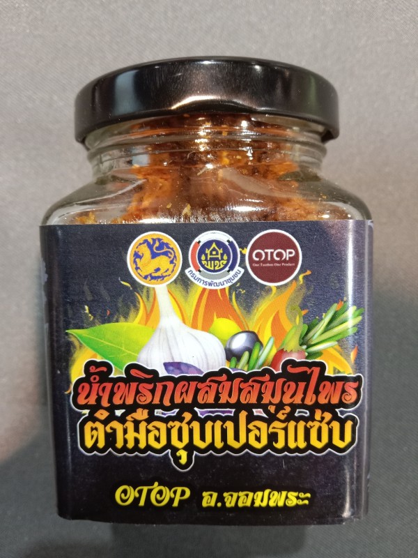 น้ำพริกสวรรค์ปลาแห้งรสแมงดาและปลาแห้งทรงเครื่องปรุงสุกสดๆใหม่ๆทำจากปลาช่อนทะเลตำมือ ไม่ใช้สารกันบูด