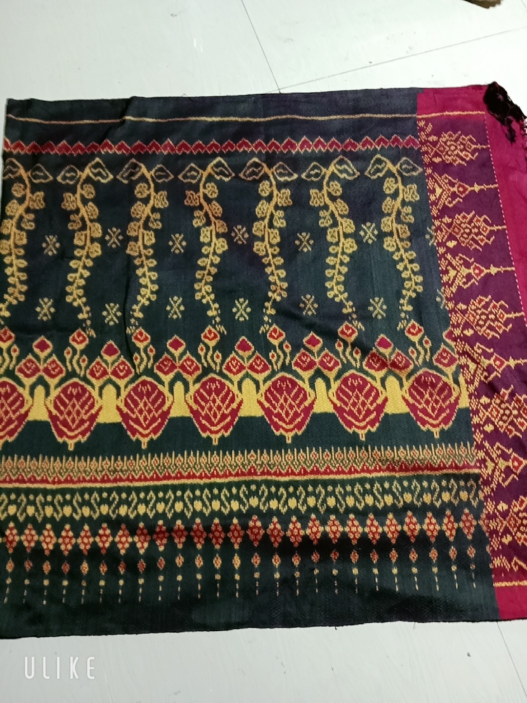 ผ้าไหมสีเขียวเหนี่ยวทรัพย์จร้าผ้ายกดอก5ตะกอ