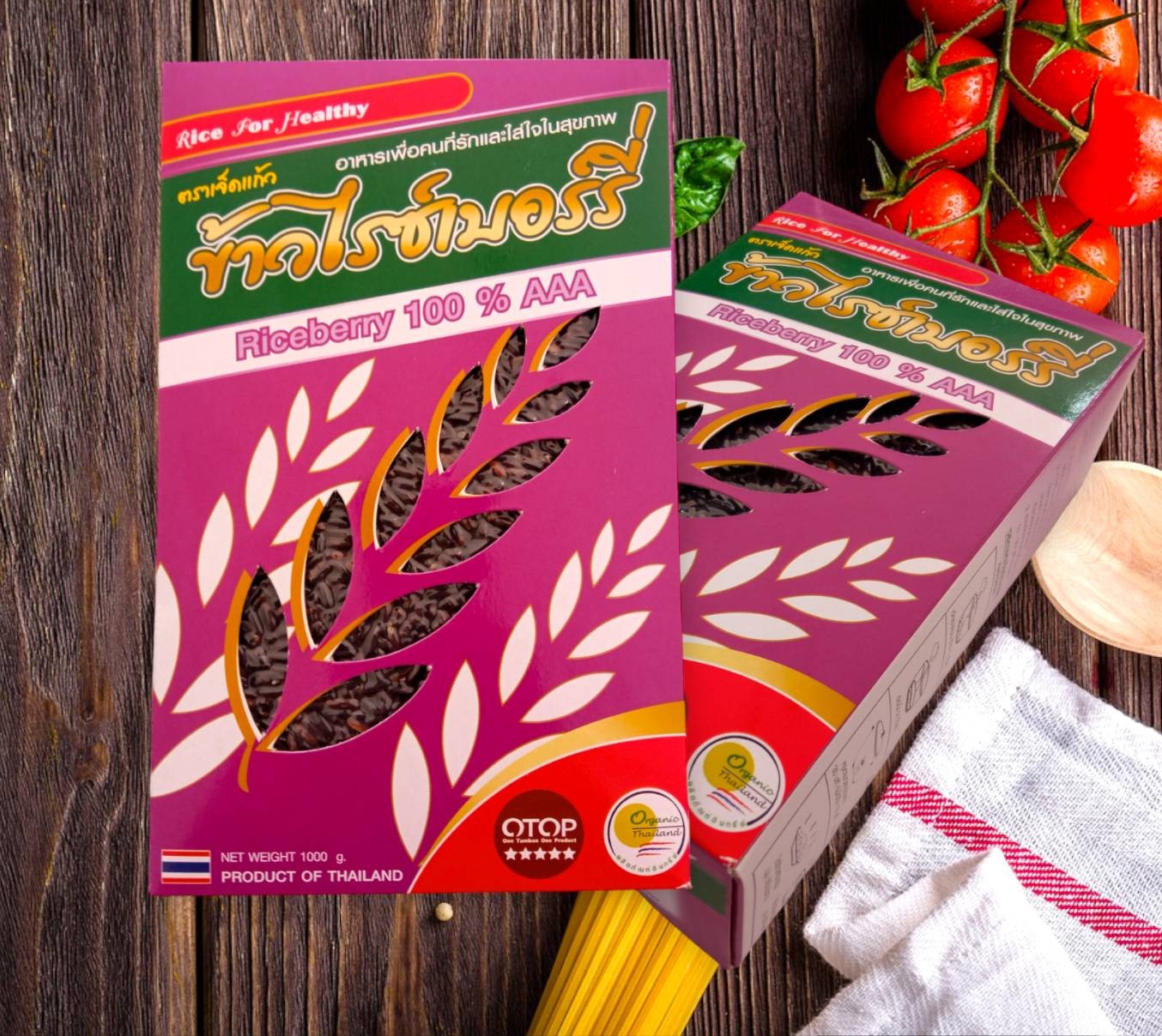 ข้าวไรซ์เบอรี่ (Riceberry) เป็นข้าวที่เกิดขึ้นใหม่ จากการผสมข้ามพันธุ์ระหว่างข้าวเจ้าหอมนิล และข้าวขาวดอกมะลิ 105 มีลักษณะเป็นข้าวเจ้าสีม่วงเข้ม ซึ่งสีม่วงเข้มที่พบในข้าวไรซ์เบอรี่ (Riceberry) เกิดขึ้นตามธรรมชาติมีส่วนประกอบเป็นสารแอนโทไซยานิน ซึ่งก็คือรงค์วัตถุหรือสารสี ที่สามารถละลายน้ำได้ดี และจัดอยู่ในกลุ่มของฟลาโวนอยด์หรือสารต้านอนุมูลอิสระ ที่มีประสิทธิภาพสูง นอกจากนี้ข้าวไรซ์เบอรี่ (Riceberry) ยังมีเมล็ดเรียวยาว ผิวมันวาว มีกลิ่นหอมเป็นเอกลักษณ์ แถมยังมีรสชาติหวาน กลมกล่อมชวนรับประทาน สามารถปลูกได้ตลอดทั้งปี โดยมีอายุเก็บเกี่ยวประมาณ 130 วัน นอกจากนี้รำข้าวและน้ำมันรำข้าวจากข้าวไรซ์เบอรี่ (Riceberry) ยังมีคุณสมบัติต้านอนุมูลอิสระที่ดี ซึ่งทางการแพทย์นิยมนำไปใช้ทำผลิตภัณฑ์อาหารโภชนาบำบัดด้วย