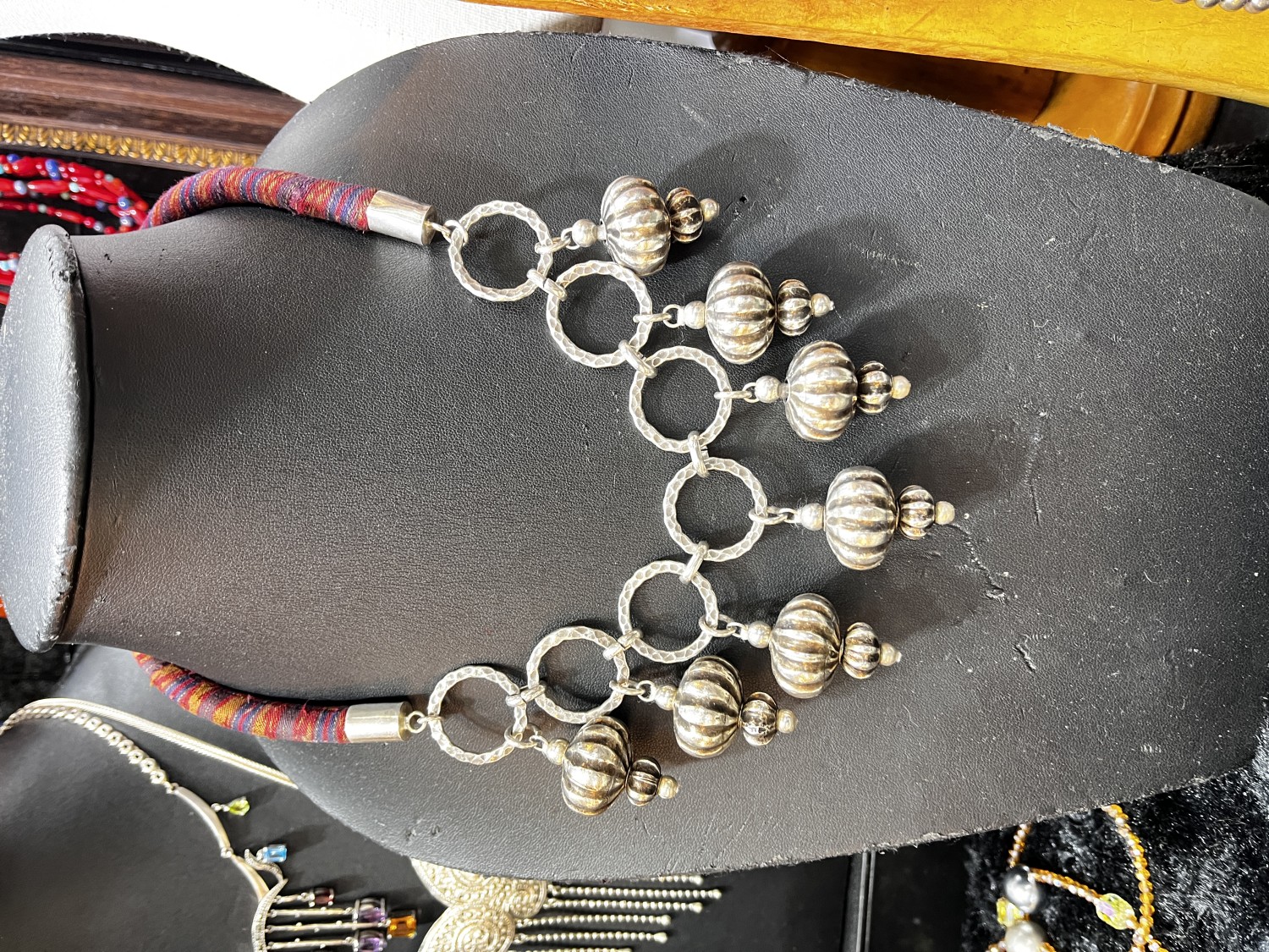 สร้อยเงินแท้ออกแบบผสมผสารกับผ้าไหมสุรินทร์