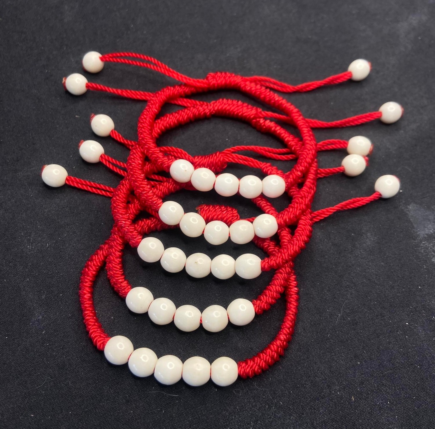 ถักด้ายแดง ใส่เม็ดประคำกลม5มิล ช่วยเสริม โชคลาภ บารมี อำนาจ