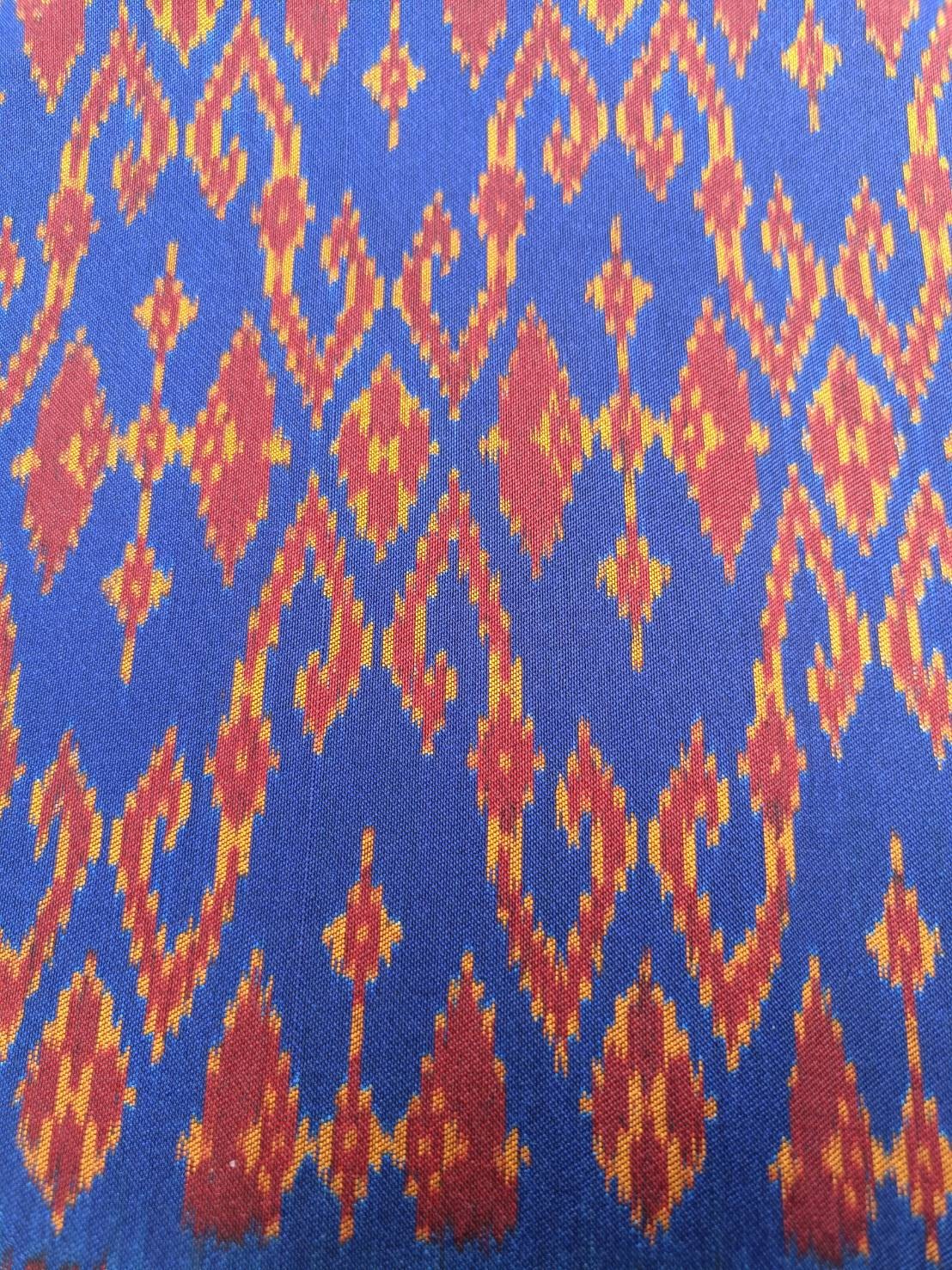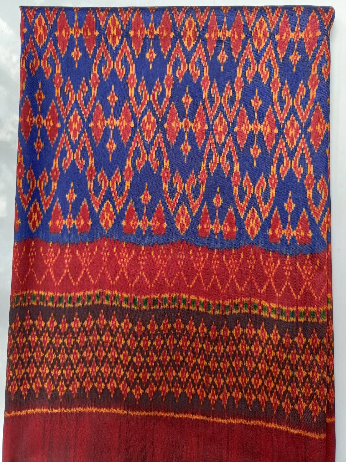 ผ้าไหมมัดหมี่ 3 ตะกอ สีเคมี ขนาด 1 * 2 เมตร ราคา 2,800  บาท