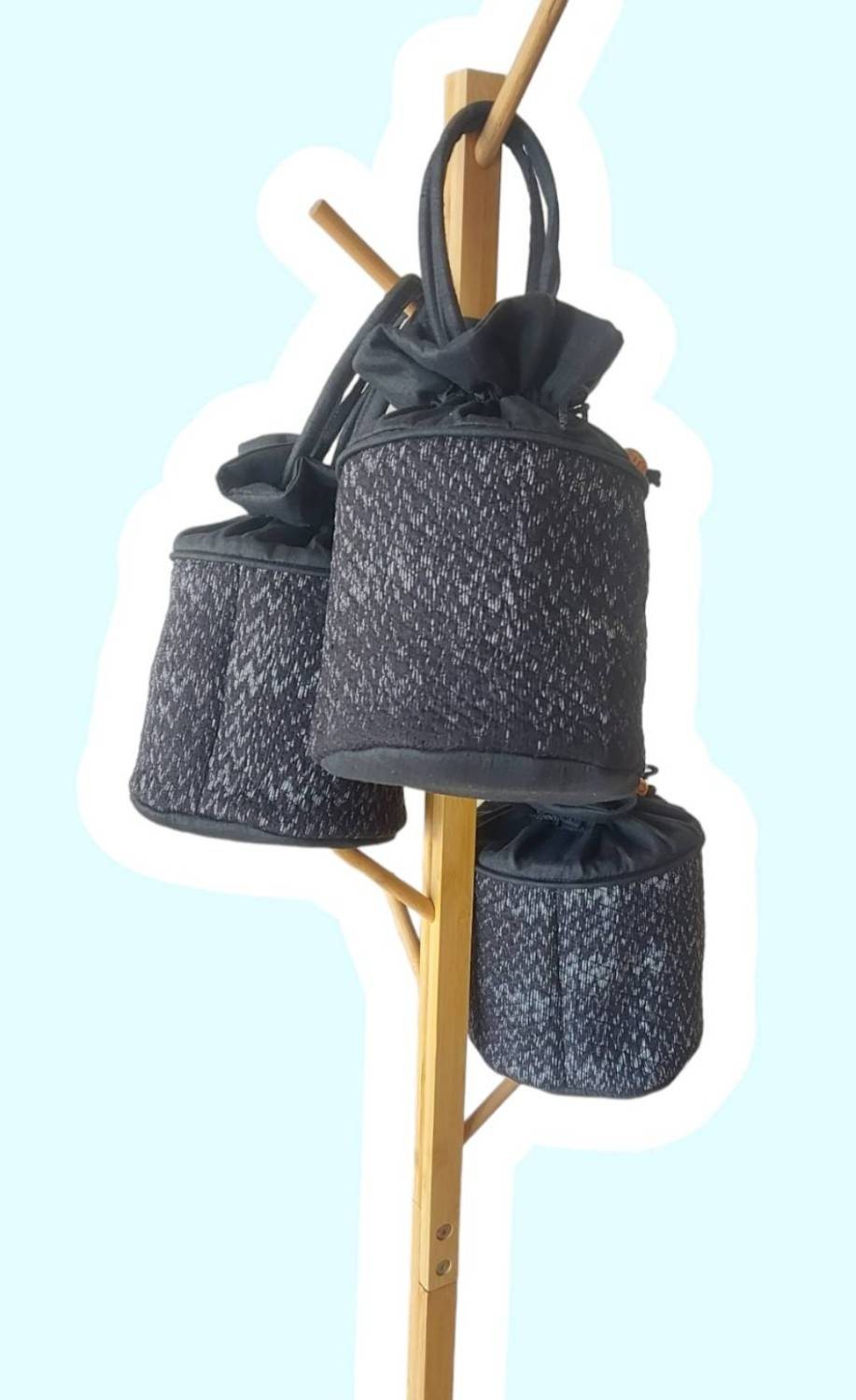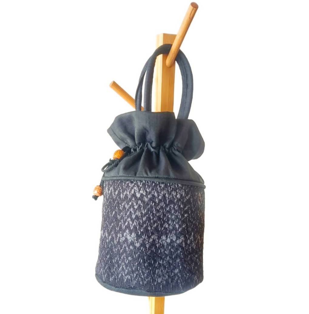 กระป๋าผ้าไหม ถุงเงินถุงทอง สีดำ ปากกระเป๋าหูรูดใส่ของได้จุใจ ใช้คล้องมือ ถือสะดวก