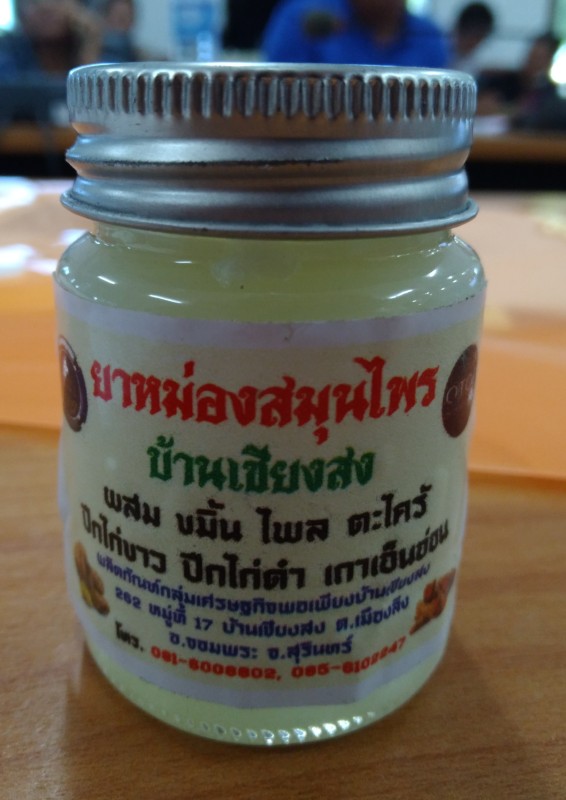 ส่วนผสม มี ขมิ้น ไพล ตะไคร้ ปีกไก่ขาว ปีกไก่ดำ เถาเอ็นอ่อน