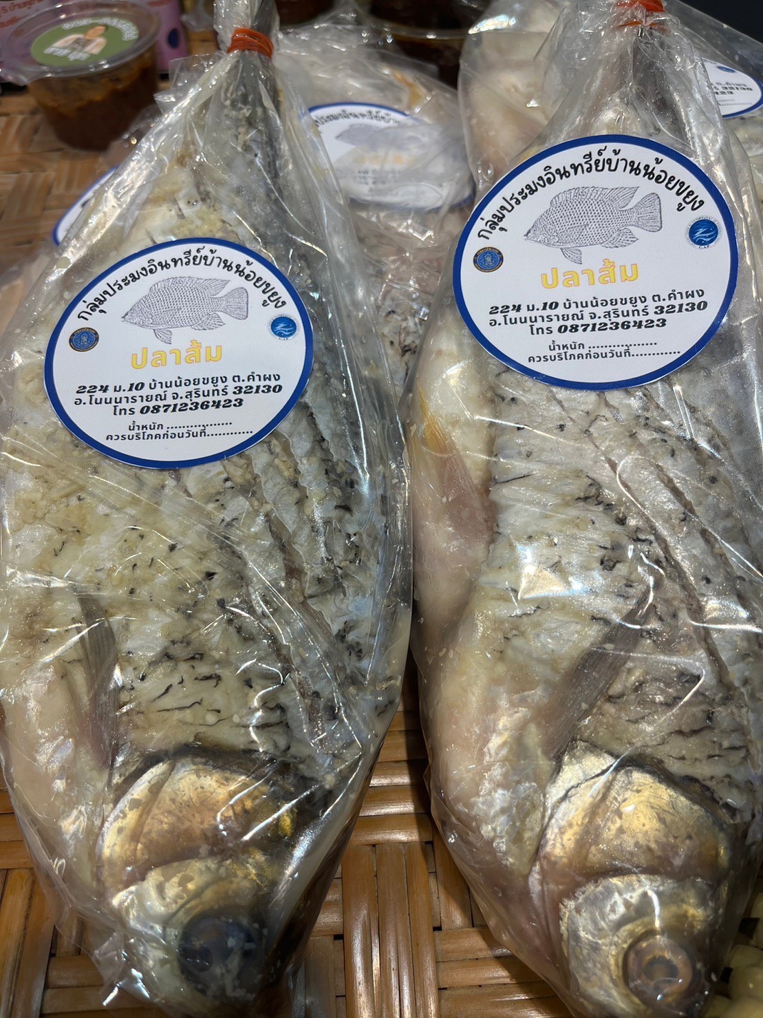 กลุ่มประมงอินทรีย์นอ้ยขยุงแปรรูปจากปลาที่เลี้ยงโดยคนในชุมชนโดยเน้นอาหารจากธรรมชาติปลอดภัยและมีอยุ่ในชุมชนเช่น แหนแดง ฟางขาว รำ เศษผักที่เหลือใช้ในครัวเรือนเน้น ประหยัด ปลอดภัยใส่ใจสิ่งแวดล้อม