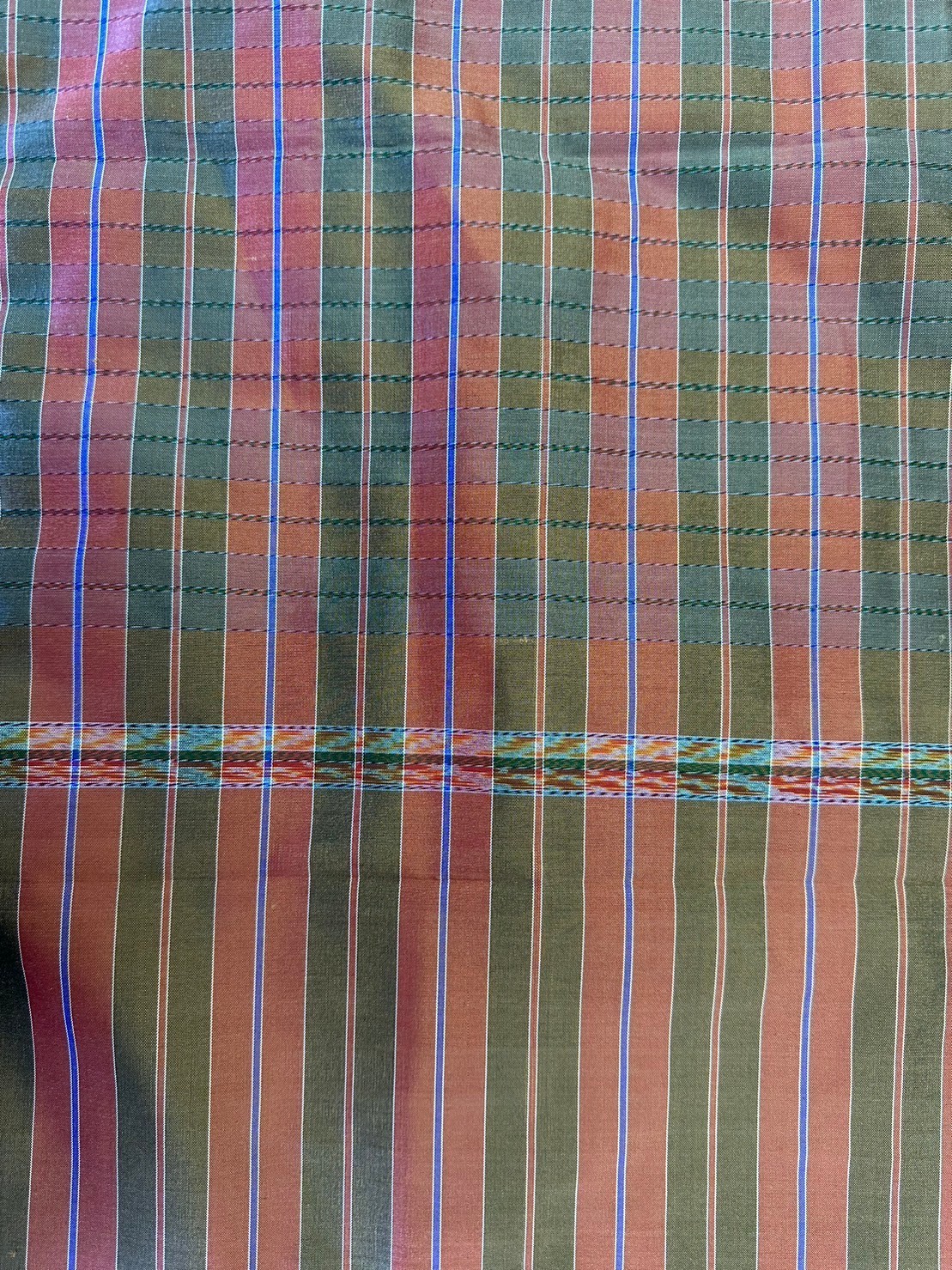 ผ้าขาวม้าไหมแท้ทอมือ สีเคมี ทำจากไหมจุล ทอกี่กระตุก จากกลุ่ม สตรีทอผ้าและแปรรูปผ้าไหม บ้านหนองแวง ตำบลบักได อำเภอพนมดงรัก จังหวัดสุรินทร์