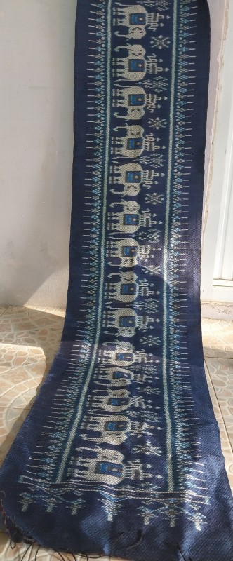 ผ้าคลุมไหล่ลายช้าง  5 ตะกอ สีคราม ยาว 215 ซม. กว้าง 62 ซม.