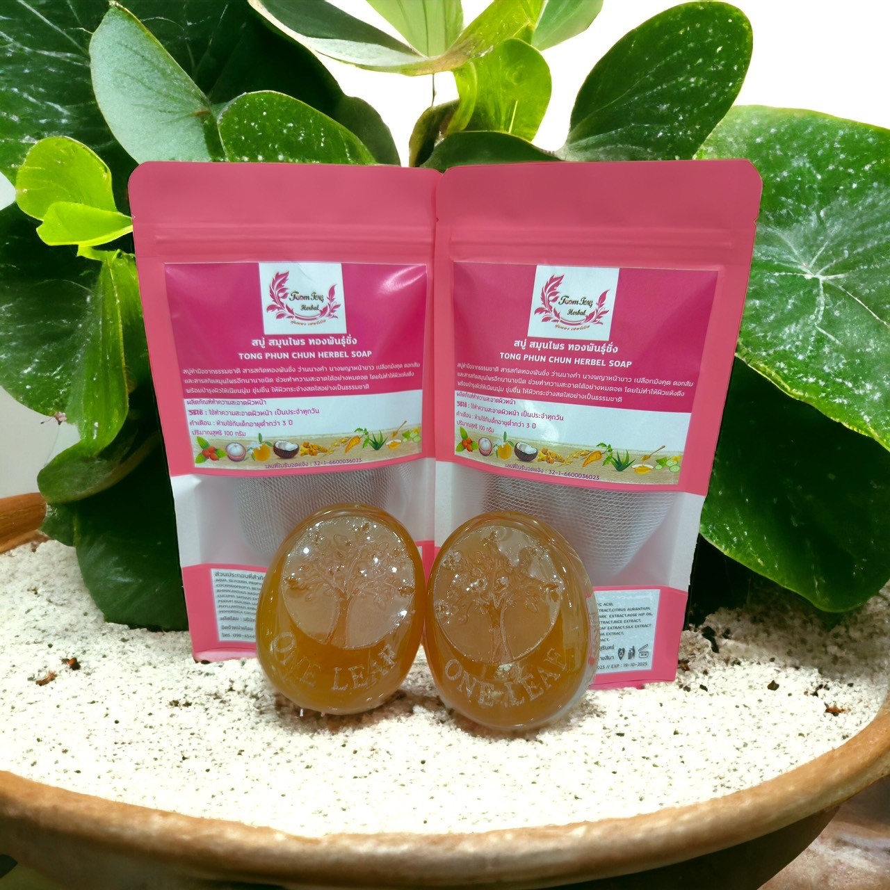สบู่สมุนไพร ตุ้มทอง เฮอร์เบิ้ล ❤️ สูตรทองพันชั่ง ส่วนผสมจากสมุนไพรแท้ กลิ่นหอมส้ม เนื้อฟองสบู่ละเอียด สำหรับทำความสะอาดผิวหน้า ลดฝ้า-กระ บนใบหน้า ทำให้ใบหน้ากระจ่างใส