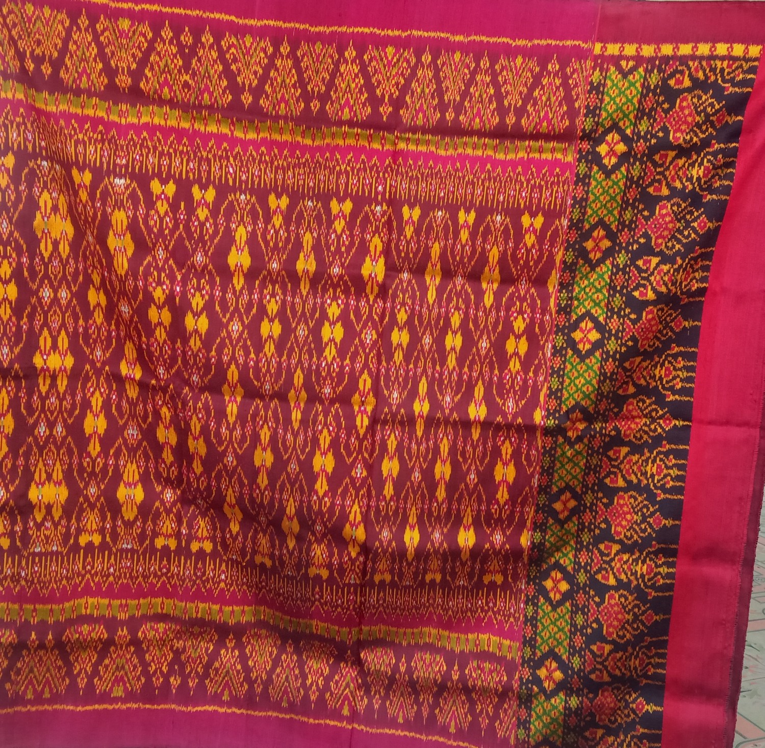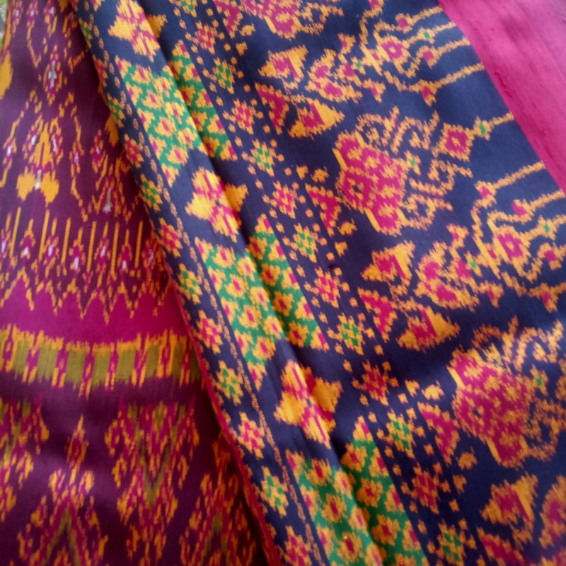 ผ้าไหมมัดหมี่ ทอจากเส้นไหมบ้าน 3 ตะกอ ประยุกต์ต่อเชิงหน้านาง