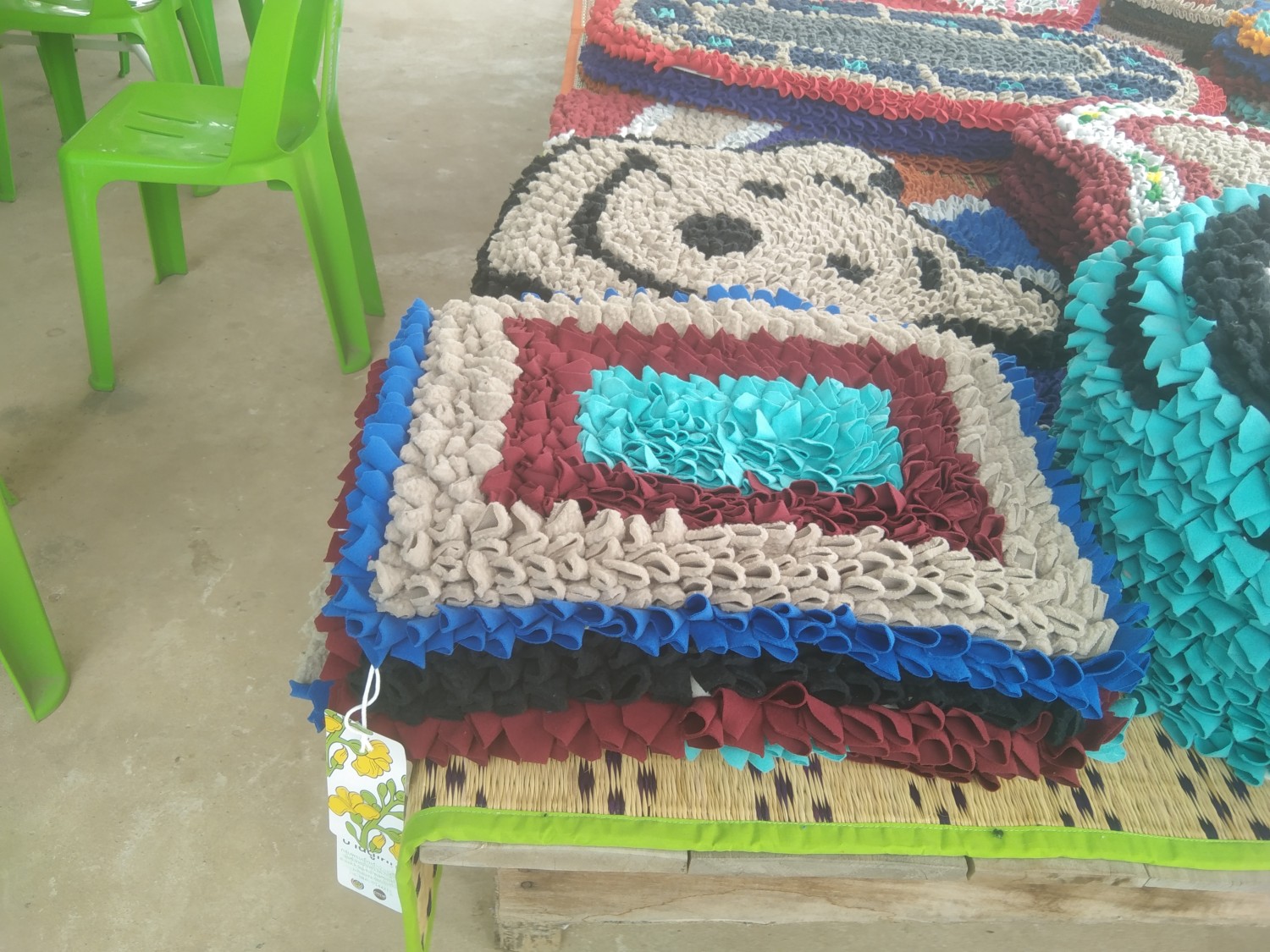กลุ่มพรมเช็ดเท้า บ้านดู๋โศก แม่บ้านใช้เวลาว่างจากการทำงานประจำผลิตพรมเช็ดเท้า ทำจากเศษผ้า และใช้ด้ายขนาดใหญ่ มีความทนทาน ใช้งานได้นาน