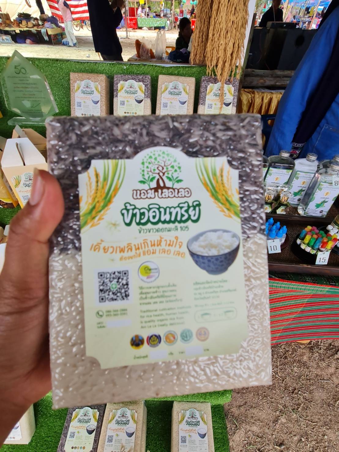 เป็นข้าวหอมมะลิที่ได้จากแปลงนาอินทรีย์ โดยการใช้เชื้อไตรโคเดอร์มาในการกำจัดเชื้อรา ป้องกันโรคไหม้คอรวง ปุ๋ยได้มาจากการไถกลบตอซังและหว่านปอเทือง เพื่อให้เป็นปุ๋ยพืชสด ใช้น้ำหมักชีวภาพในการบำรุงต้นข้าว และฉีดฮอร์โมนไข่ในระยะก่อนข้าวออกรวง 1 เดือน เก็บเกี่ยวในระยะพลับพลึง สีข้าวโดยให้จมูกข้าวยังติดอยู่กับเมล็ดเพื่อเพิ่มคุณค่าทางโภชนาการ