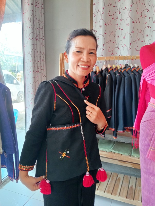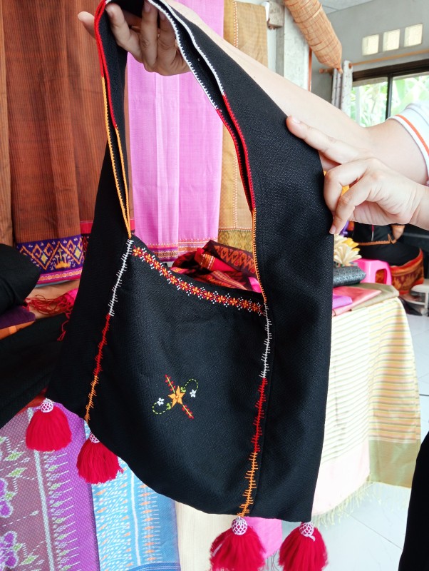 ผ้าฝ้ายปักแส่วด้วยเส้นไหมย้อมสีเคมี