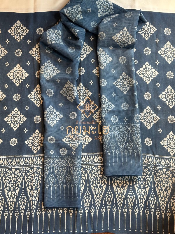 เซ็ตครามผ้าไหมแท้ที่ผ่านการย้อมจากสีธรรมชาติแท้ๆ 100% มากกว่าสิบครั้ง จนสีสรรเป็นที่น่าพอใจ จึงล็อคสีและล้างสีส่วนต่างออกจนหมดจด แรงบันดาลใจการทำลายผ้า เป็นลวยลายไทยๆ ที่นุ่งแล้วต้องมีคนเหลียวมองอย่างแน่นอน และหากสวมใส่ก็จะเกิดมงคลแก่ชีวิต ลายไทยมงคลผนังโบสถ์ สีแจ่มลายชัดลายครบองค์ประกอบ คือ ท้องผ้าลายประจำยาม ลูกขนาบ และกรวยเชิง ลายคมชัดละเอียดงดงามสะอาดตา สวมใส่แล้วเด่นไม่เหมือนใคร ทางเพจเราทำผืนต่อผืน กั้นสีด้วยธัญญพืชและลงด้วยสีธรรมชาติไม่ทำลายระบบนิเวศน์และทำมือทุกขั้นตอน