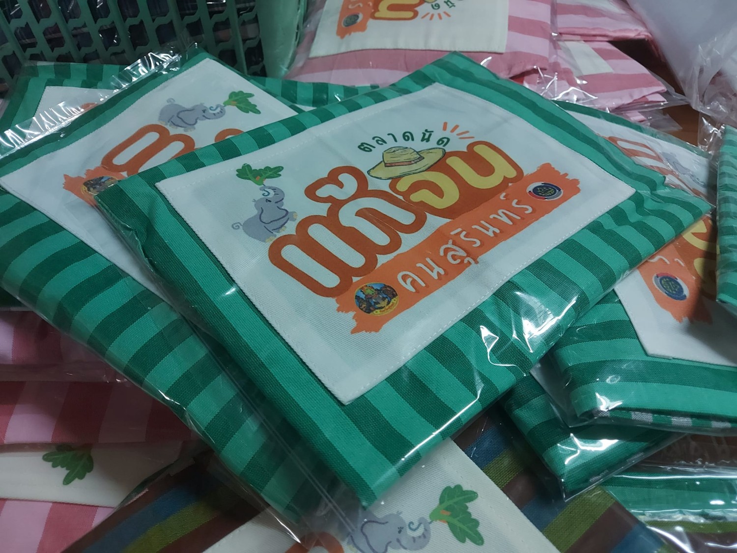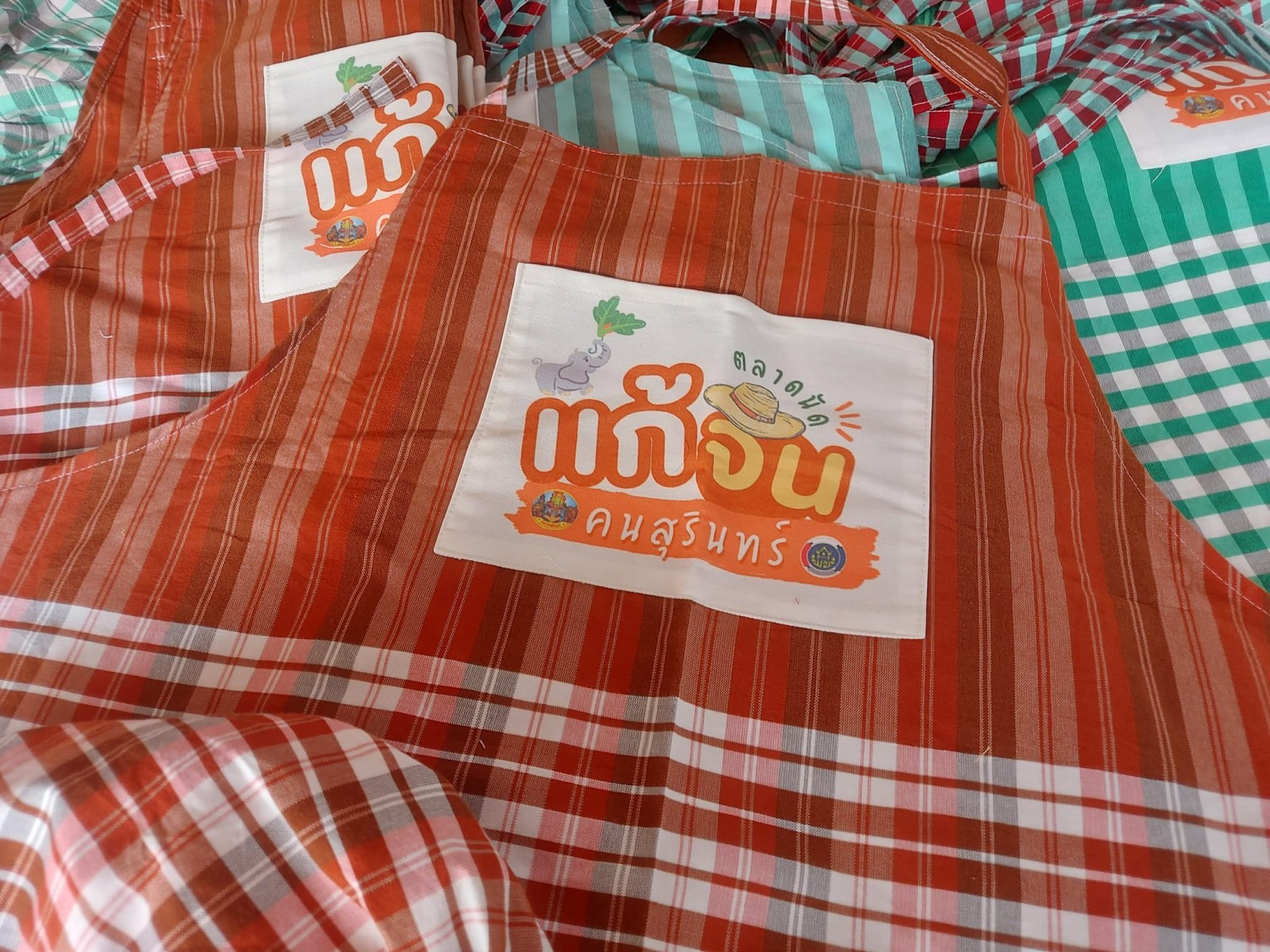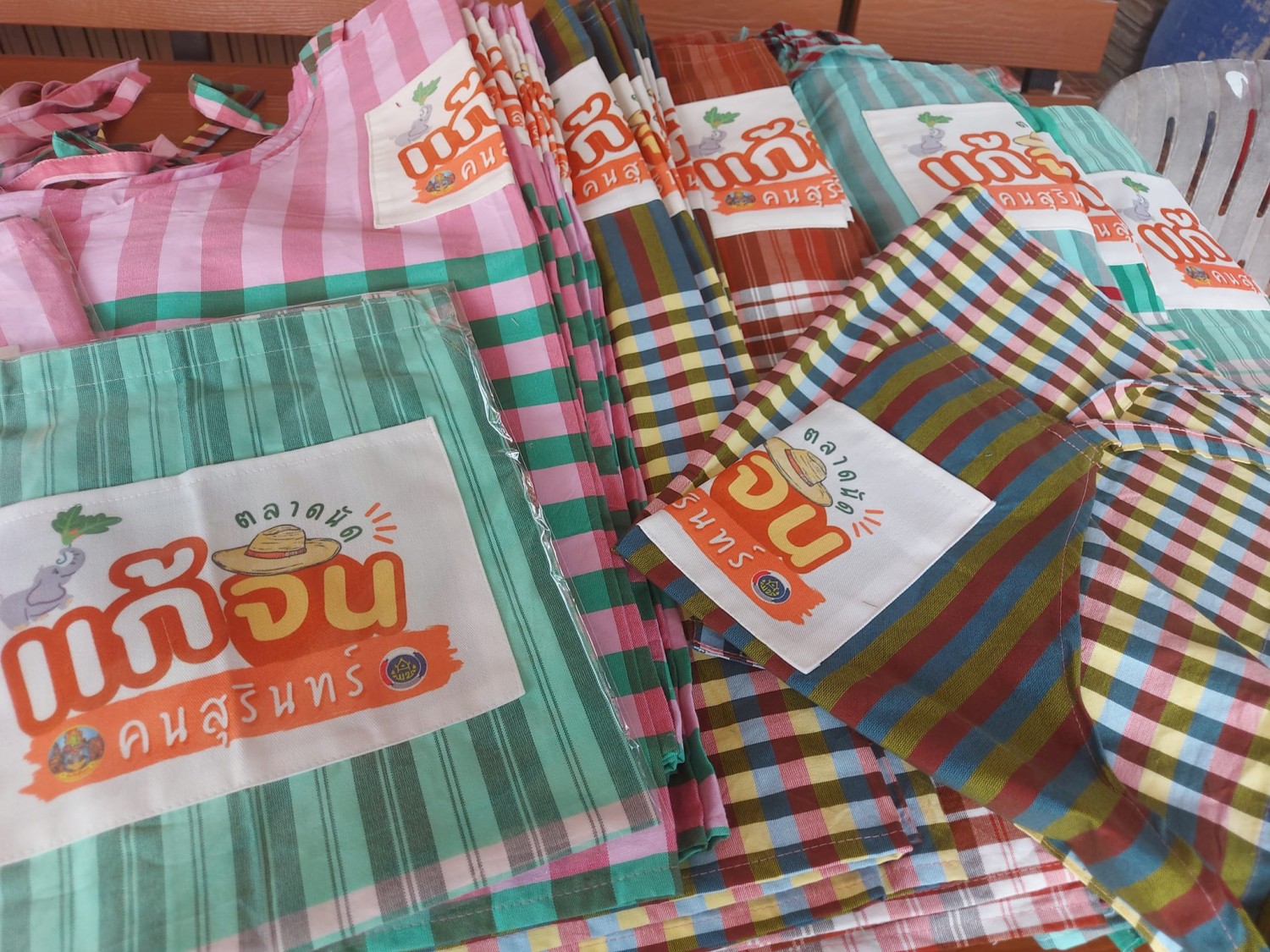 ผ้ากันเปื้อนผ้าขาวม้า+หมวกคลุมผม หลากสีหลายลาย