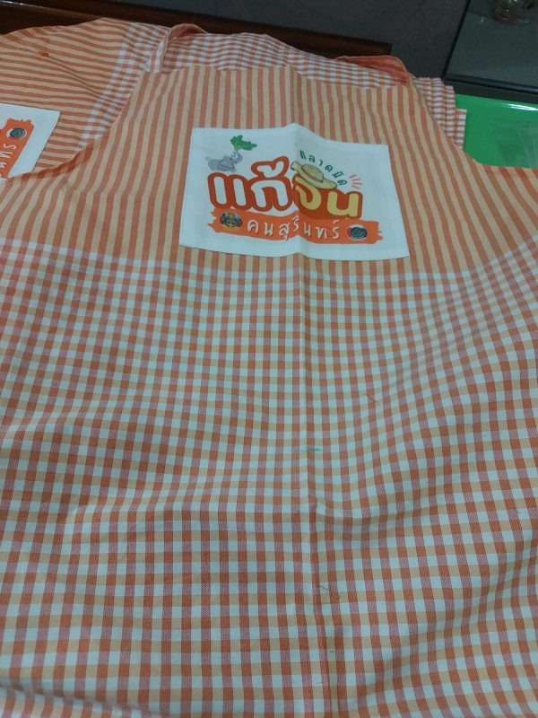 ชุดผ้ากันเปื้อนผ้าขาวม้า พร้อมหมวกคลุมผม