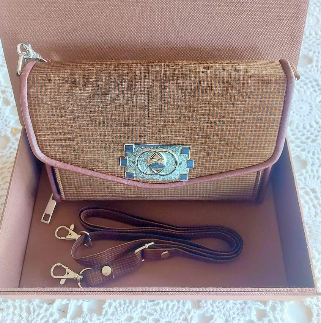 กระเป๋าผ้าไหมลายสมอ สายสะพายปรับระดับได้ตามต้องการมีช่องใส่ธนบัตรได้หลายช่อง ด้านในบุหนังกันน้ำอย่างดี