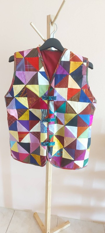 จากเศษผ้าไหม ชิ้นเล็กชิ้นน้อย นำมาสร้างสรรค์ผลงานโดยการนำมาเย็บต่อลายให้สวยงามมีสีสัน เพิ่มมูลค่าให้เศษผ้าไหมมีมูลค่า ในราคาที่จับต้องได้ ออกแบบตัดเย็บให้มีความทันสมัยใช้ผ้าไทยให้สนุก