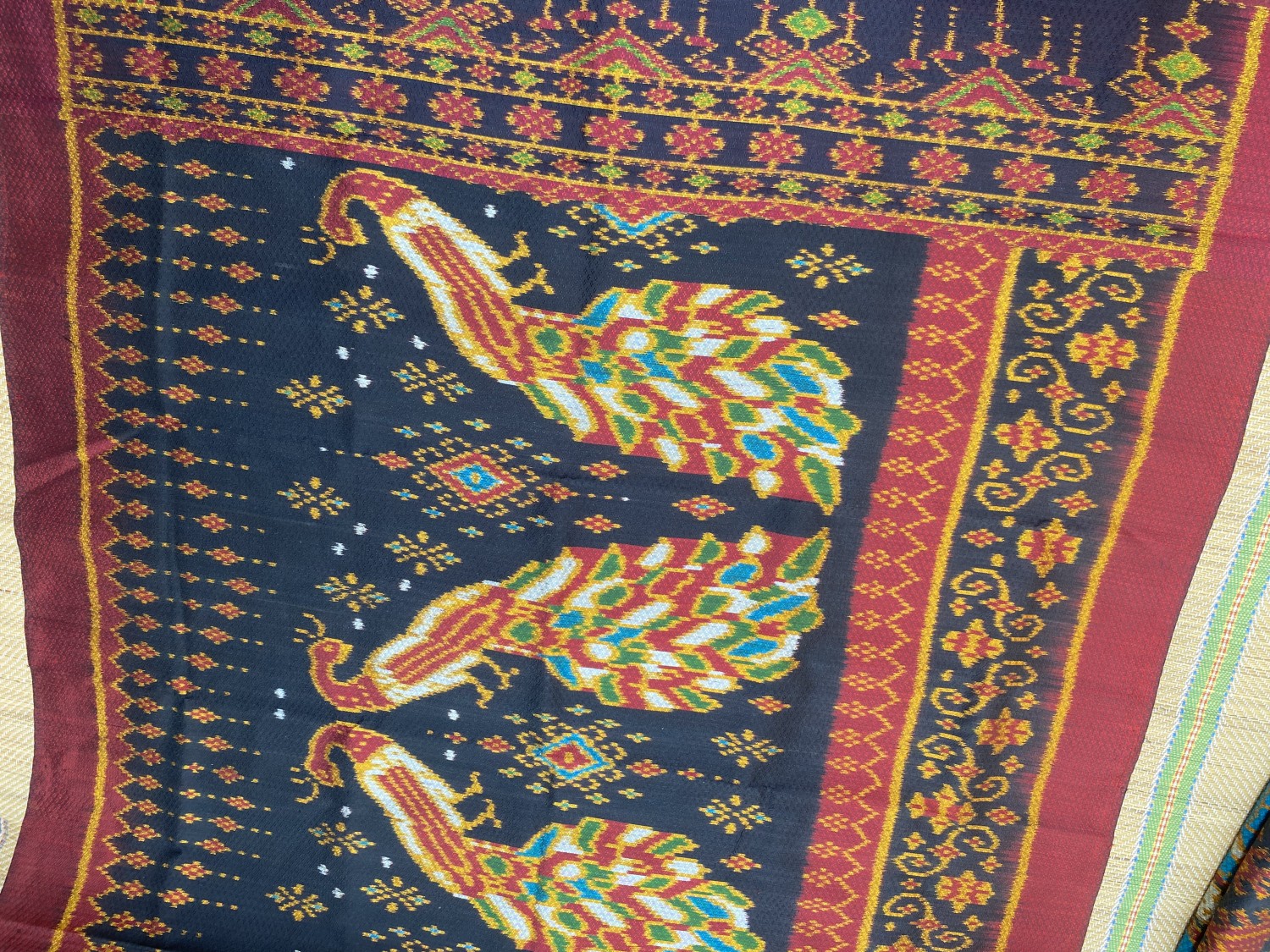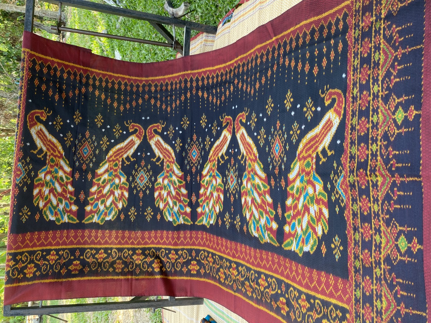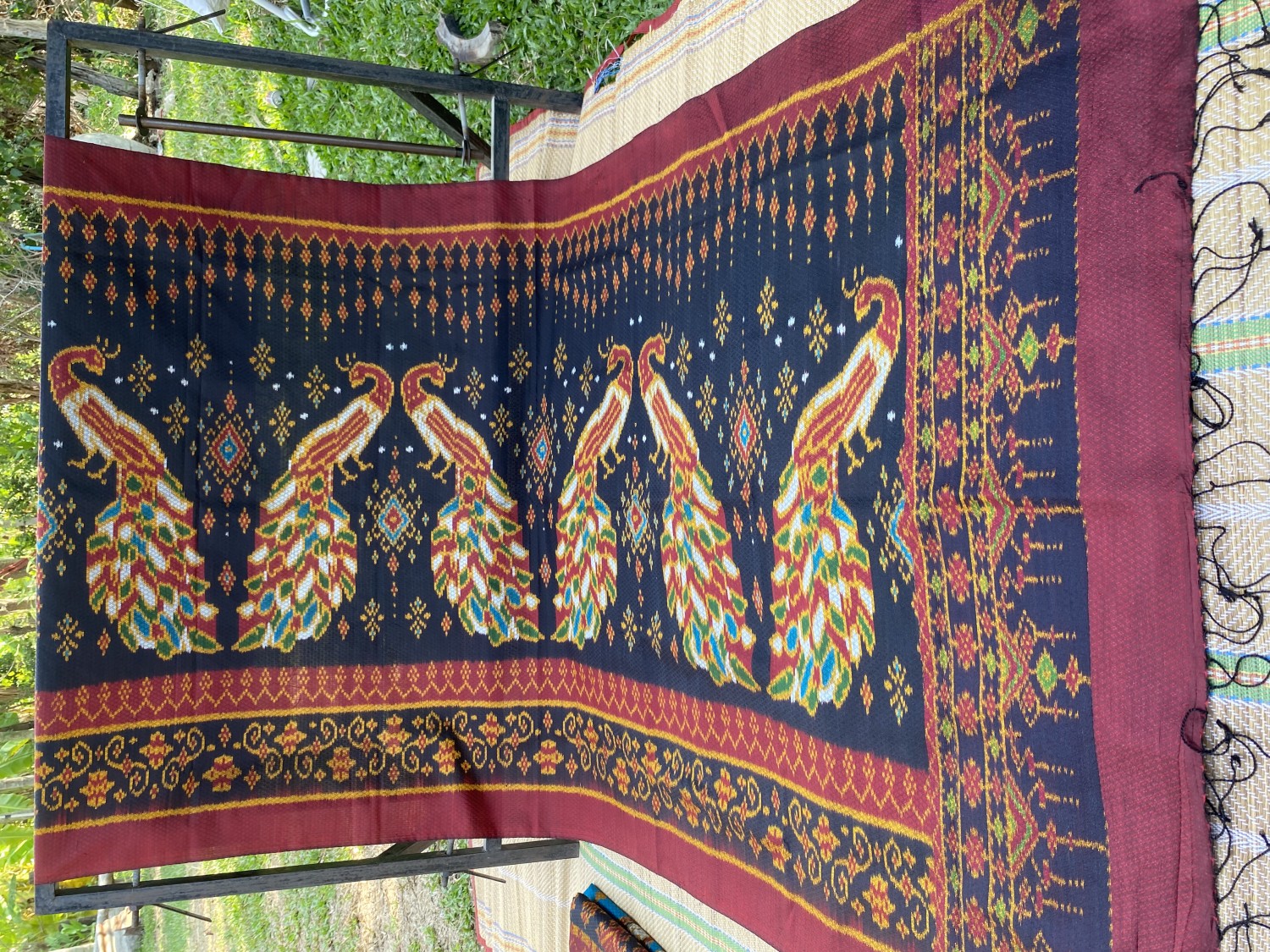 ผ้าไหมมัดหมี่ยกดอกพริกไทยลายนกยูง