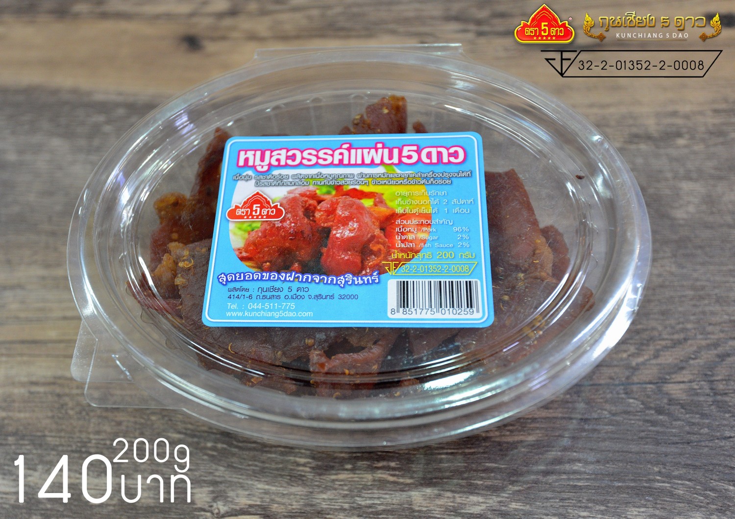 สินค้าขายดี ร้านกุนเชียง5ดาว จ.สุรินทร์ หมูสวรรค์แบบแผ่น สูตรเข้มข้น หอมเครื่องเทศ ลูกผักชี ขนาด 200กรัม อายุการเก็บรักษา2อาทิตย์ เมื่อได้รับสินค้าแล้ว ควรนำเข้าตู้เย็น