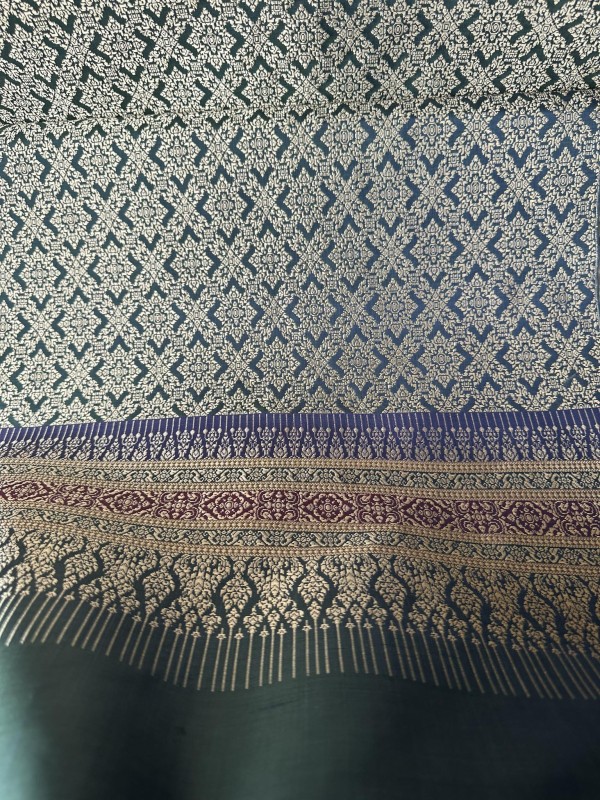 ผ้ายกทองลาย ราชวัตร์ก้านเเย่งดอกใน ย่อมุมไม้สิบสอง ขนาด 50 เซน ยาว 2.50 เมตร ราคา 45,000 บาท
