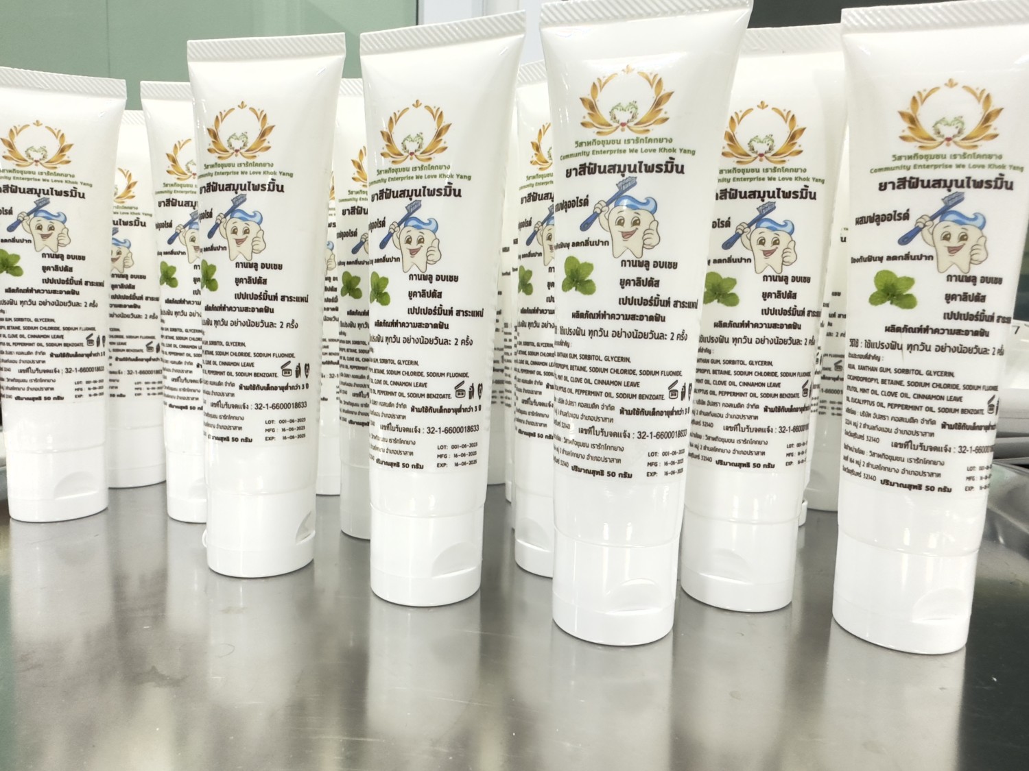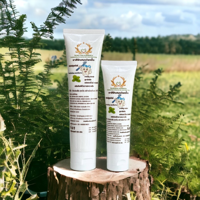 และน้ำมันหอมระเหยอีกหลายชนิด ช่วยรักษาและทำความสะอาดฟันช่วยลดกลิ่นปาก และช่วยให้ฟันขาวสดใสตามตำหรับสมุนไพรไทย พร้อมทั้งผสมฟลูออไรค์ ป้องกันฟันพุอีกด้วย