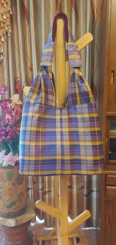 ย่ามผ้าไหมลายขาวม้าสีสันทันสมัย ดีไซน์เก๋ไก๋ แบบสะพายไหล่ รูปทรงสวยงาม สอบถามเพิ่มเติม 0817097453