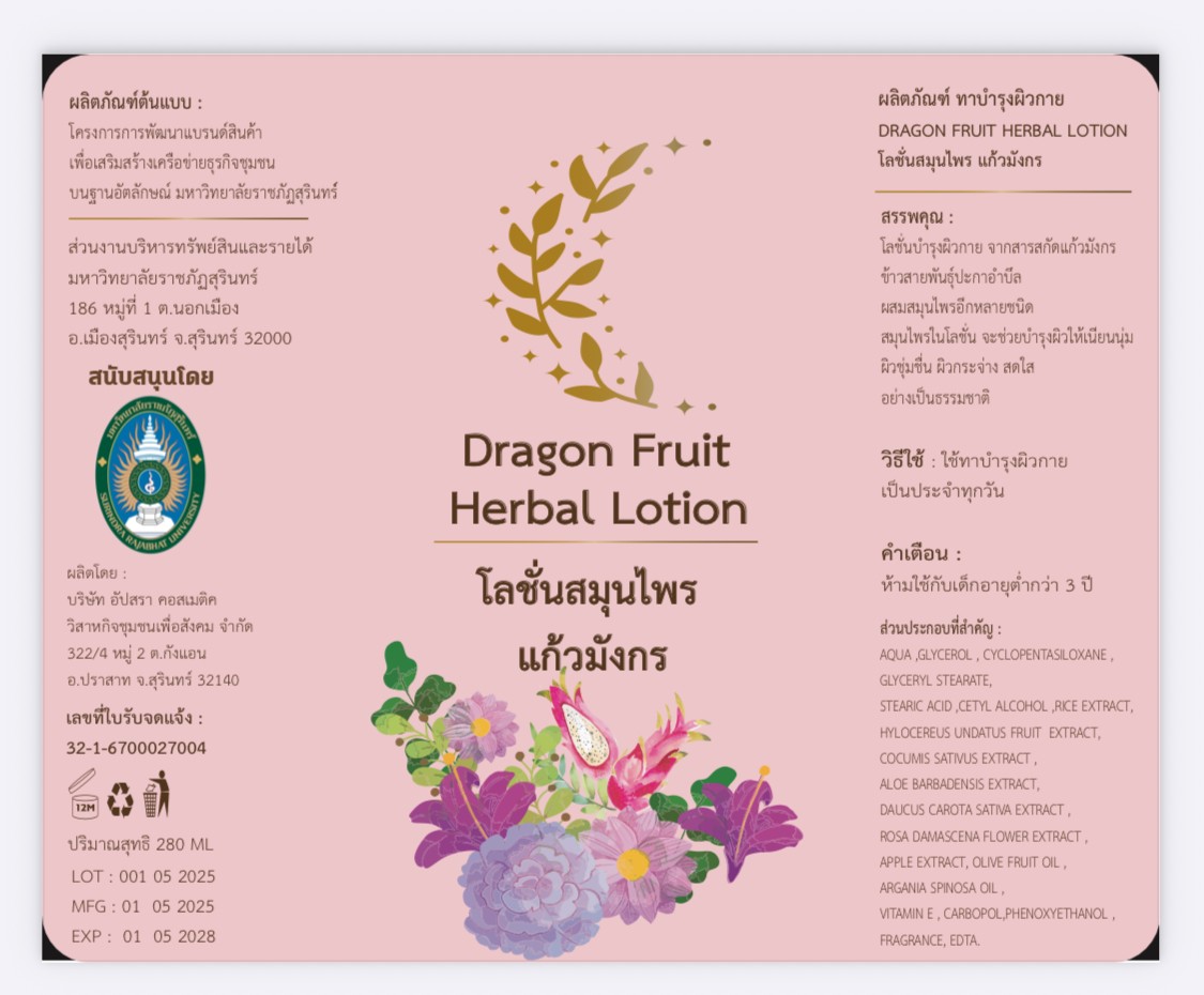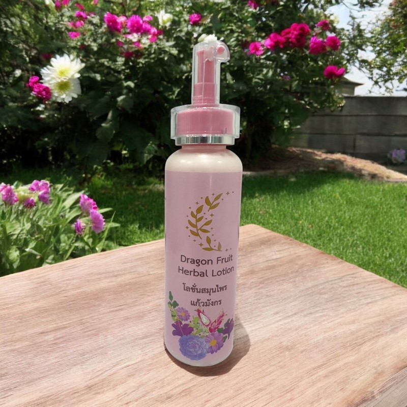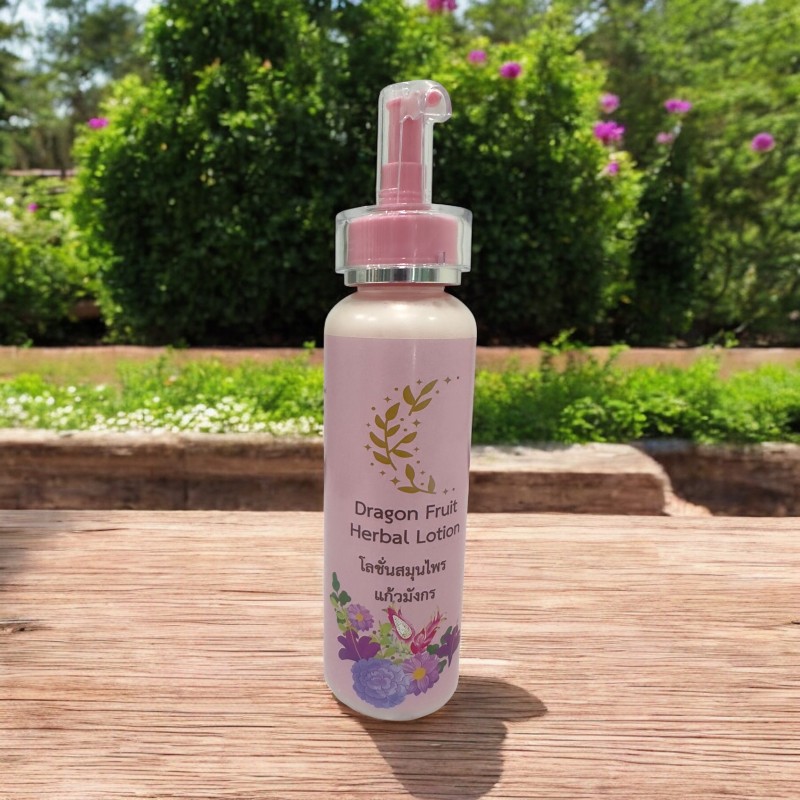 โลชั่นแก้วมังกร ผสมสมุนไพรหลายชนิด เช่น ขมิ้นชัน ว่างหางจระเข้ แตงกวา และอื่นๆ เน้นบำรุงผิวให้เนียนนุ่ม ชุ่มชื่น กระจ่างสดใส อย่างเป็นธรรมชาติ
