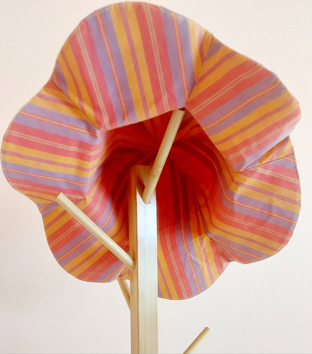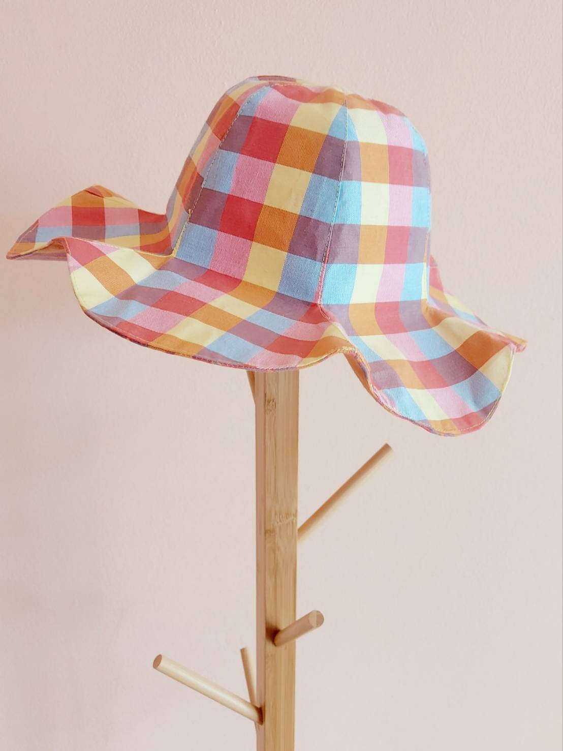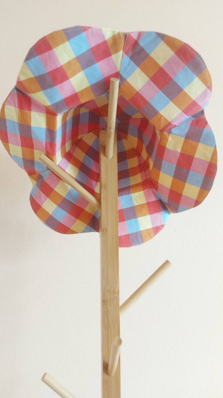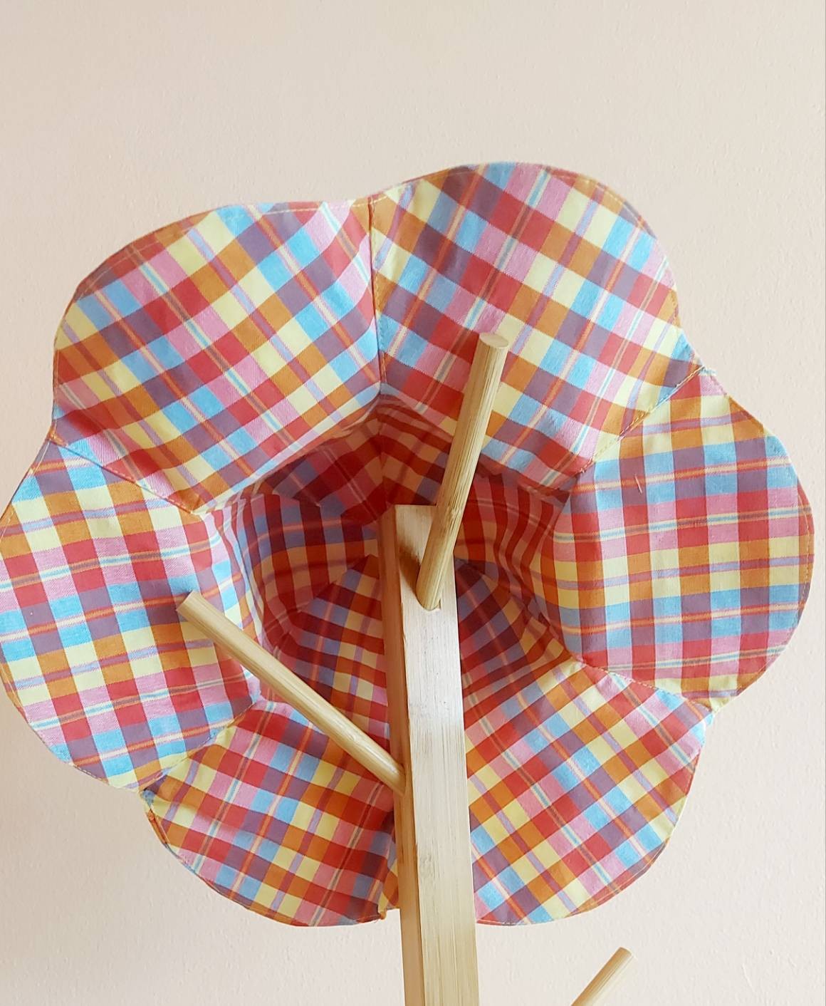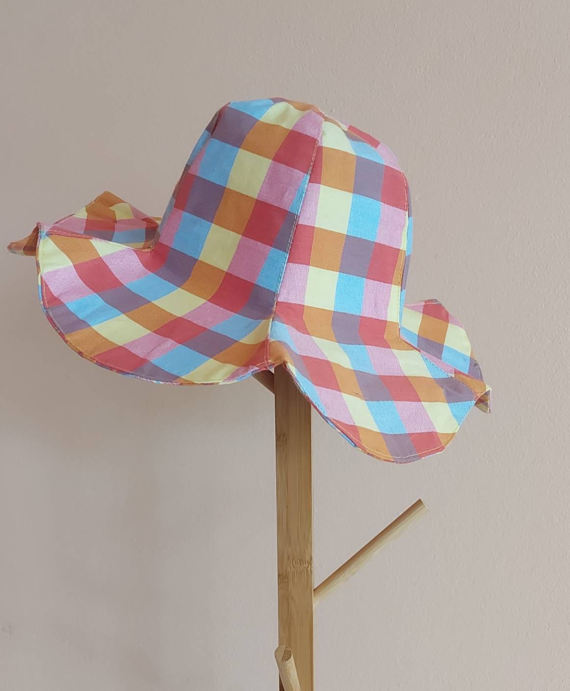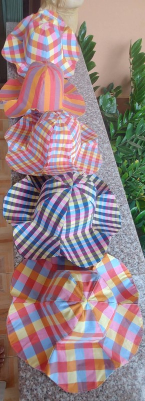 หมวกทรงทิวลิป ออกแบบดีไซน์โดยการนำผ้าฝ้ายลายผ้าขาวม้า มาตัดเย็บให้เป็นทรงที่ทันสมัย นอกจากใส่กันแดด กันลมได้แล้วยังมีความสวยงามหลากหลายสีสันของผ้าขาวม้าไทย เน้นใส่ผ้าไทยให้สนุก
