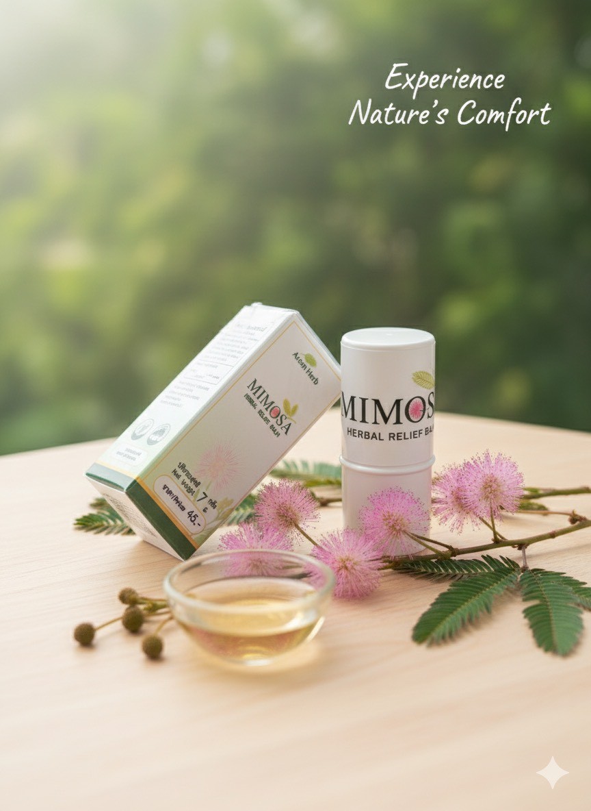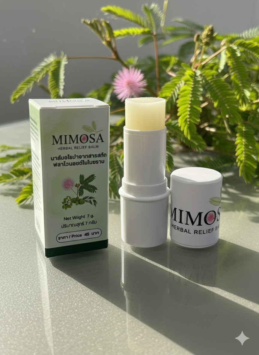 ผลิตภัณฑ์บาล์มอโรม่าจากสารสกัดฟลาโวนอยด์ในไมยราบ เป็นผลิตภัณฑ์ที่มีสารสกัดหลักจากใบไมยราบ คุณสมบัติต้านอนุมูลอิสระ ช่วยยับยั้งกระบวนการอักเสบในร่างกาย โดยใช้นวัตกรรม และเทคโนโลยี Microemulsions เพื่อให้เกิดความโดดเด่น ด้านกลิ่น สี เนื้อสัมผัส ซึมเข้าสู่ผิวหนังได้ดี