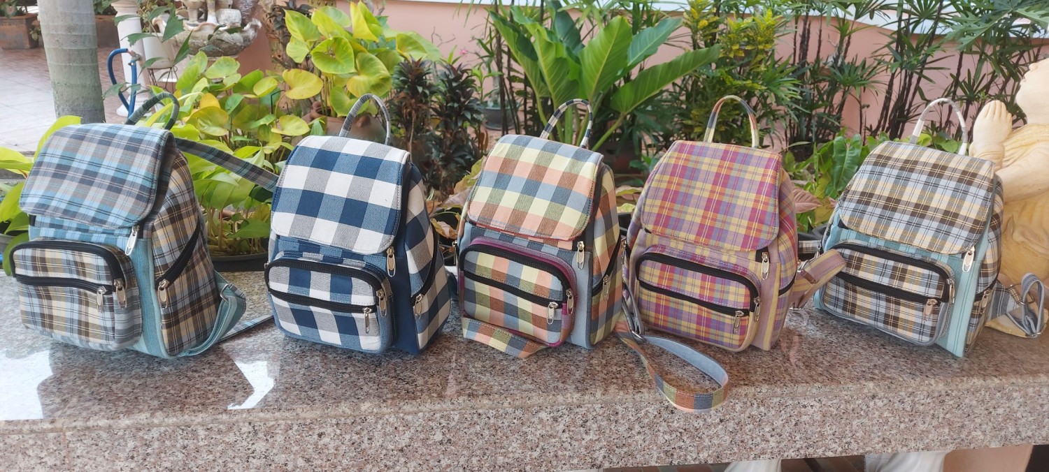 เป้ผ้าขาวม้า สายสะพายปรับระดับได้ตามต้องการ สวย ทนทาน งานฝีมือ 0817097453