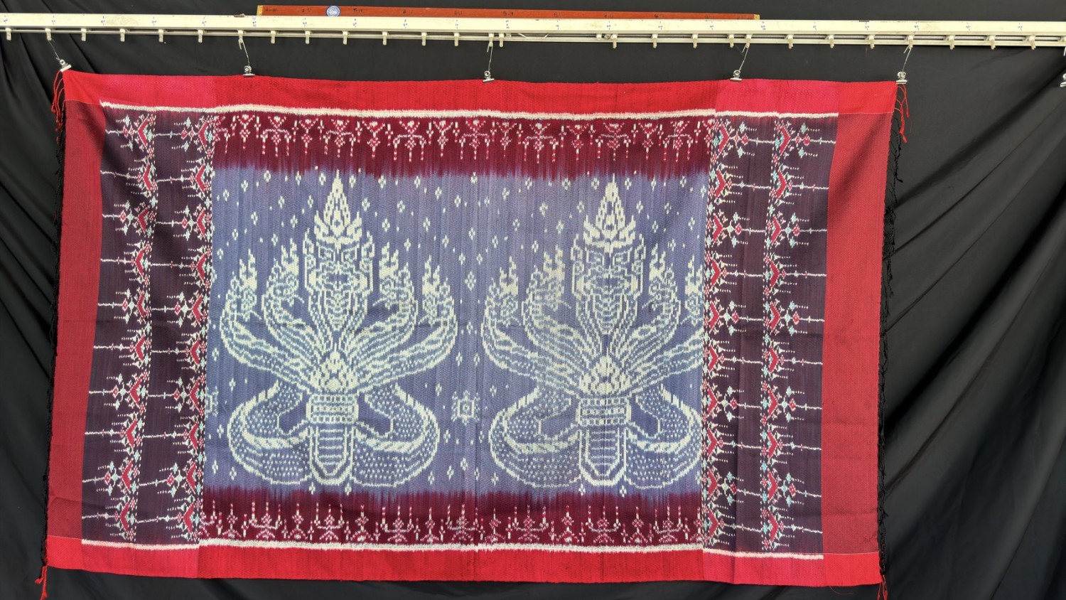 ผ้าไหมยกดอก ลูกแก้วมัดหมี่ลายสัตว์มงคล (อาบน้ำยาและอบไอน้ำแล้ว)