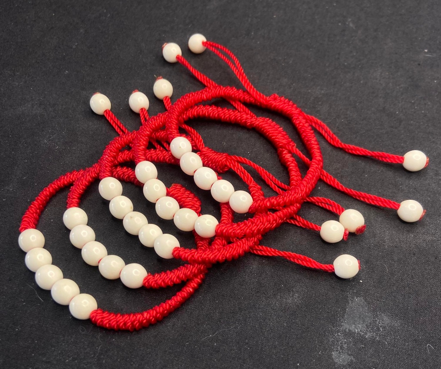 ข้อมือด้ายเเดงถักมือ ใส่เม็ดประคำ 6มิลค่ะ