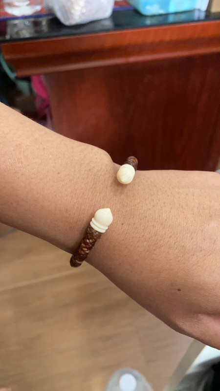 กำไลขนหๅงช้าง รุ่นนี้ถักลายกระดูกงู ขนาดหน้ากำไล 6 มิล หัวบัวงๅ 8 มิล