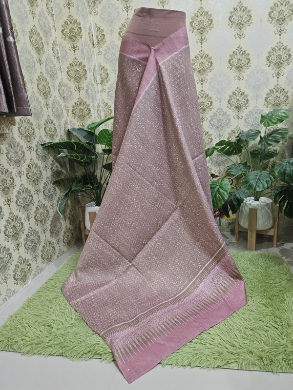 เป็นผ้าไหทลายร้อยดาว ขนาด 1×2 เมตร ย้อมสีธรรมชาติทอมือ จากครั่ง. คราม ประโหด