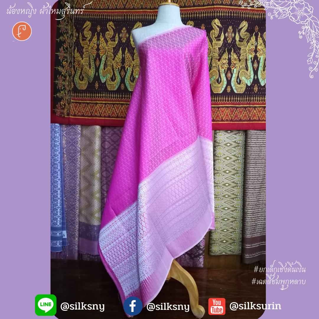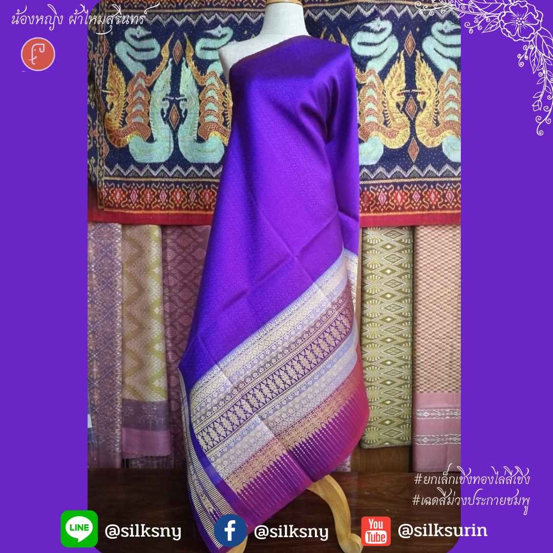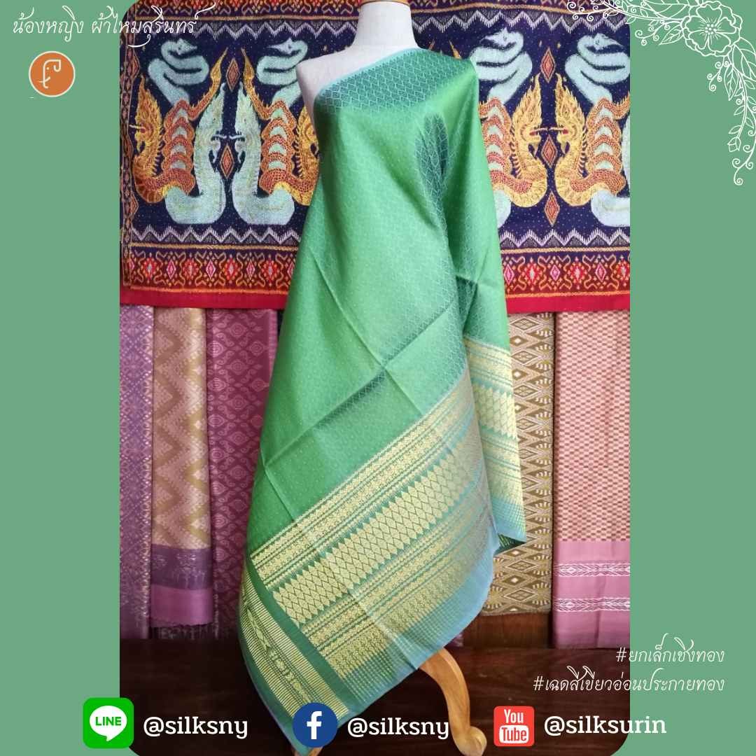 ผ้าไหมทอยกดอก เกาะเชิงเงิน หรือ เชิงทอง ขนาด 1*2เมตร