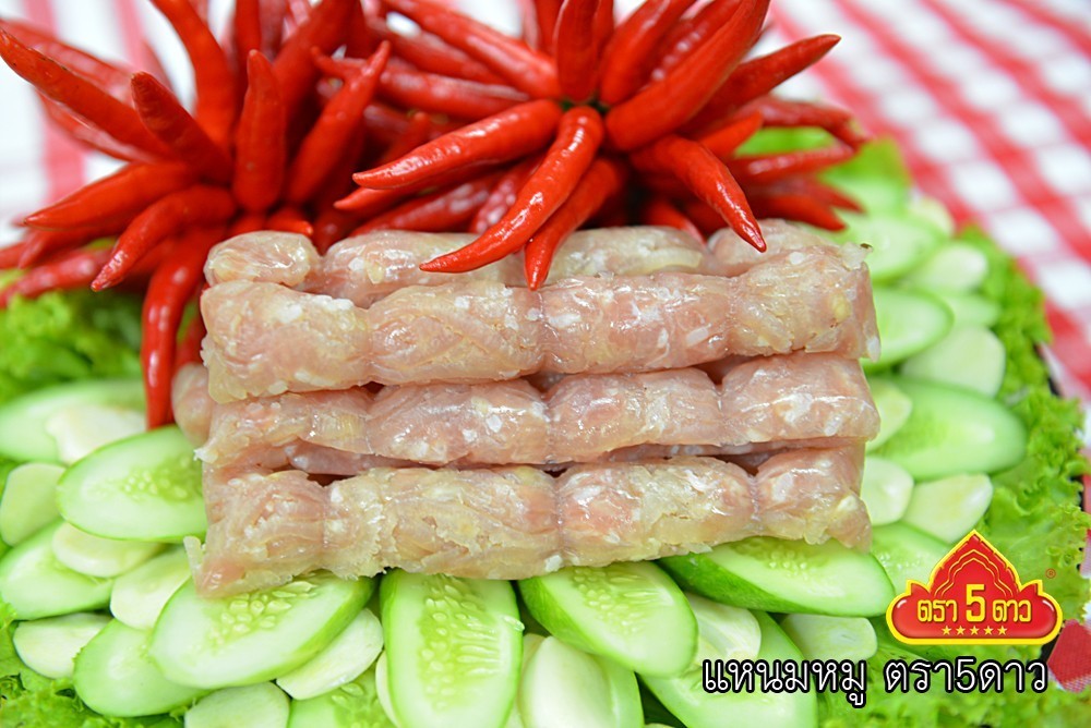 แหนมหมู ตรา5ดาว ผลิตจากเนื้อหมูและหนังหมูสด สะอาด ปลอดภัย รสชาติเปรี้ยวแซ่บ อร่อย