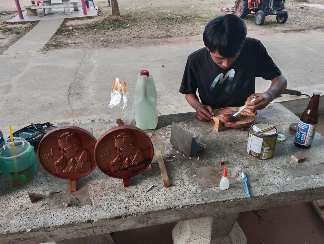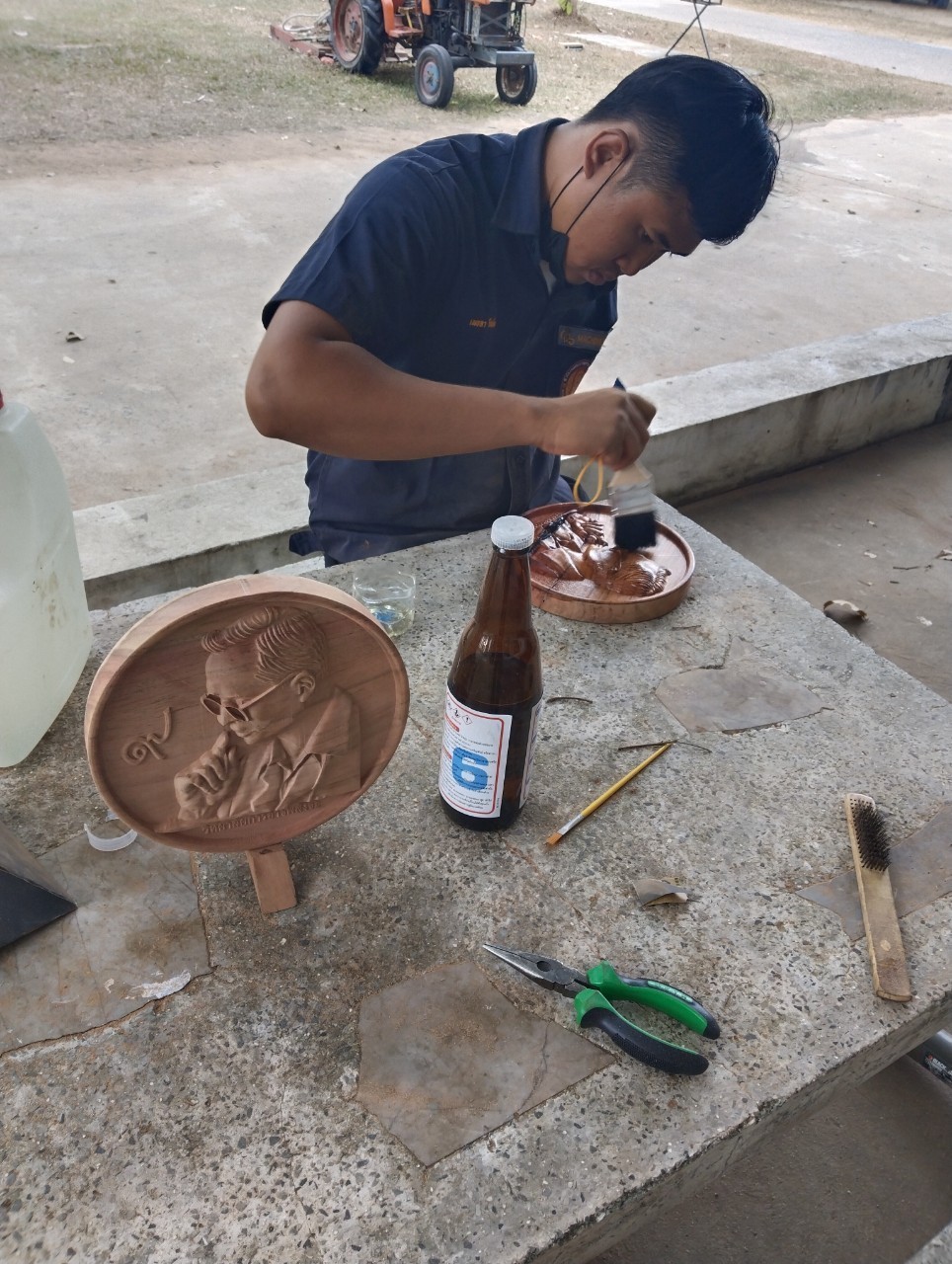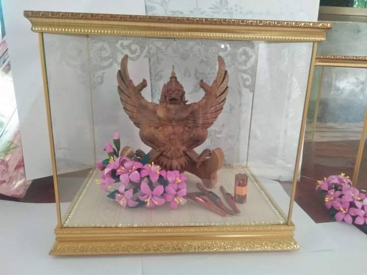 งานไม้สัก  แกะสลักด้วยเครื่อง CNC เป็น รูป รัชการ ที่ 9  ประดับตกแต่งด้วยดอกไม้รังไหม