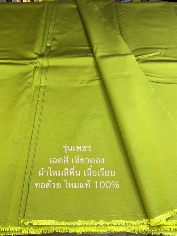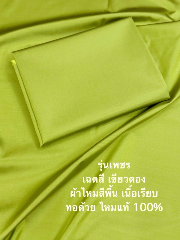 ผ้าไหมสีพื้น รุ่นเพชร เนื้อเรียบหนา ไหมแท้ สีเขียวตอง ตัดขายเป็นหลา รหัส C-ST-0110672d