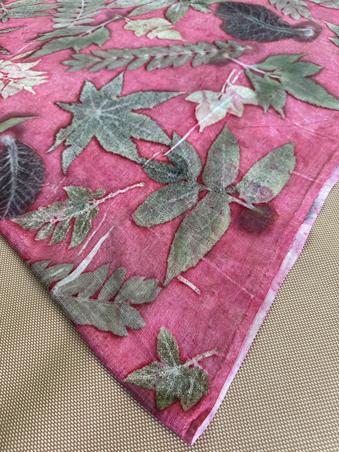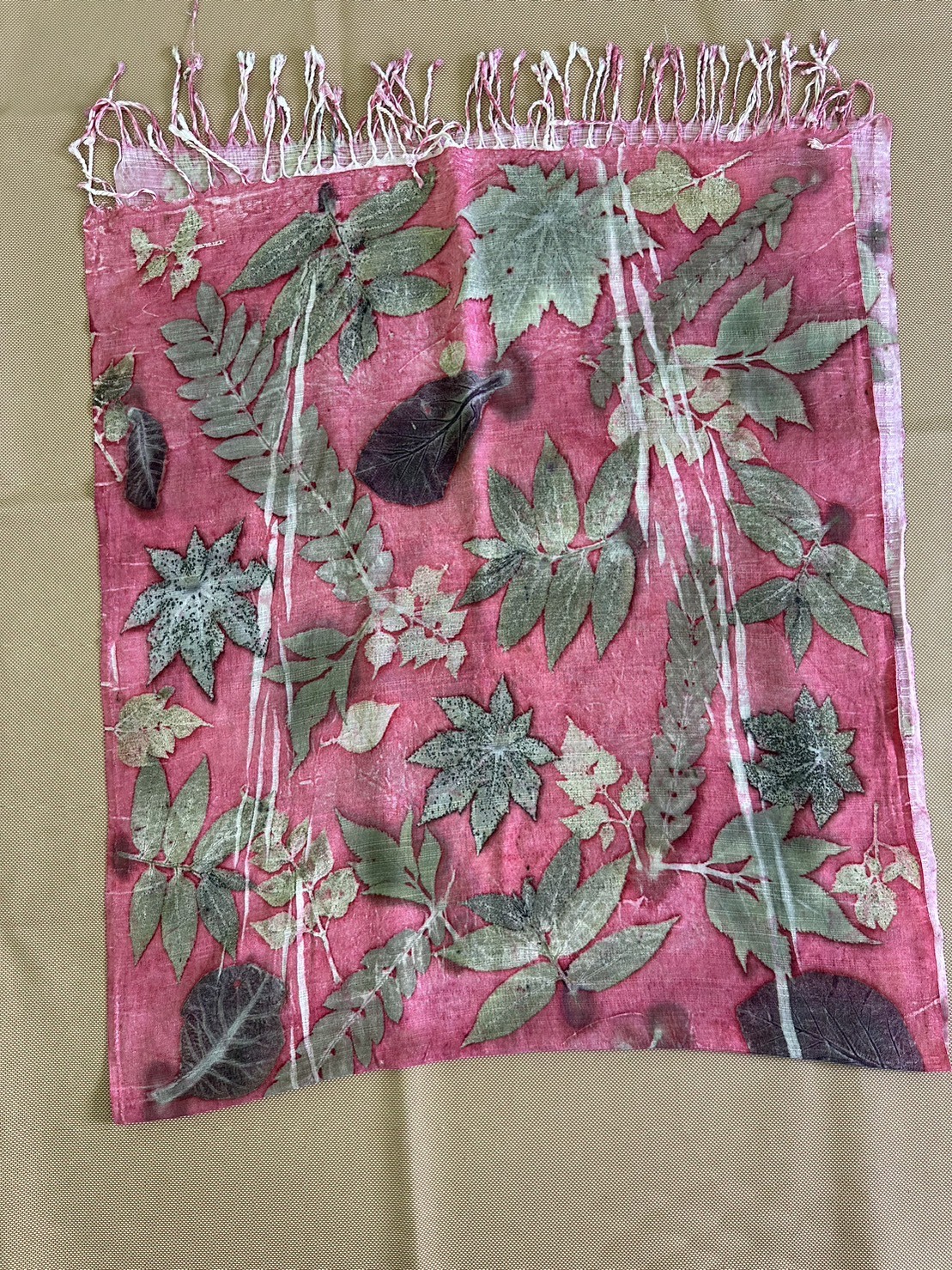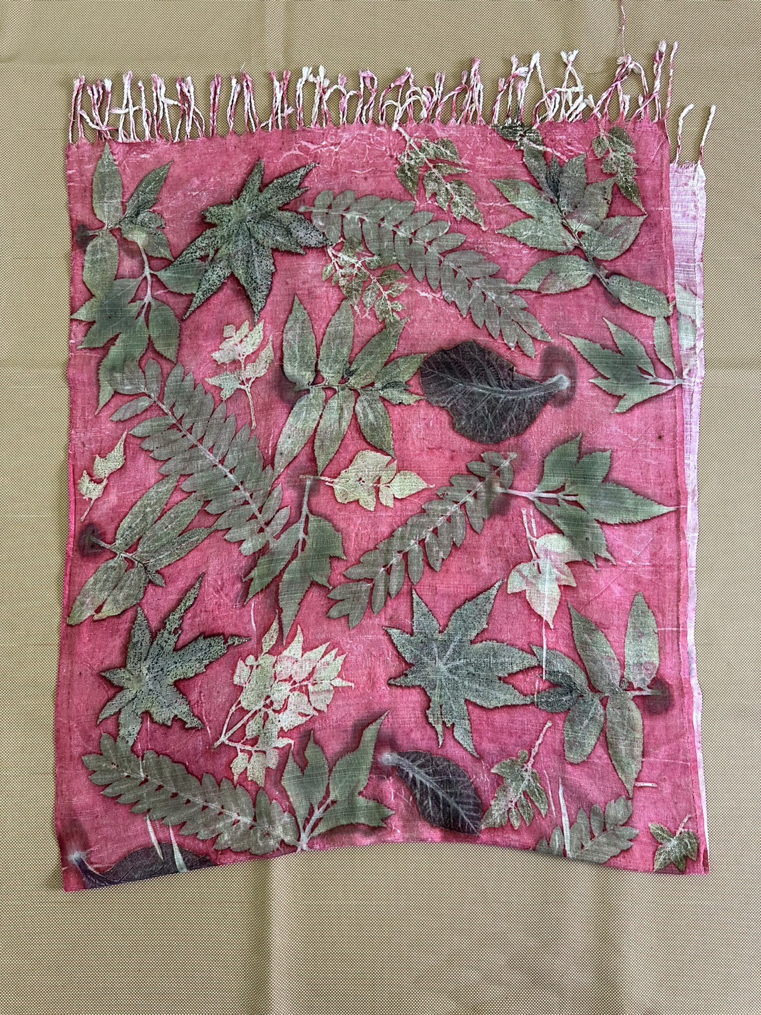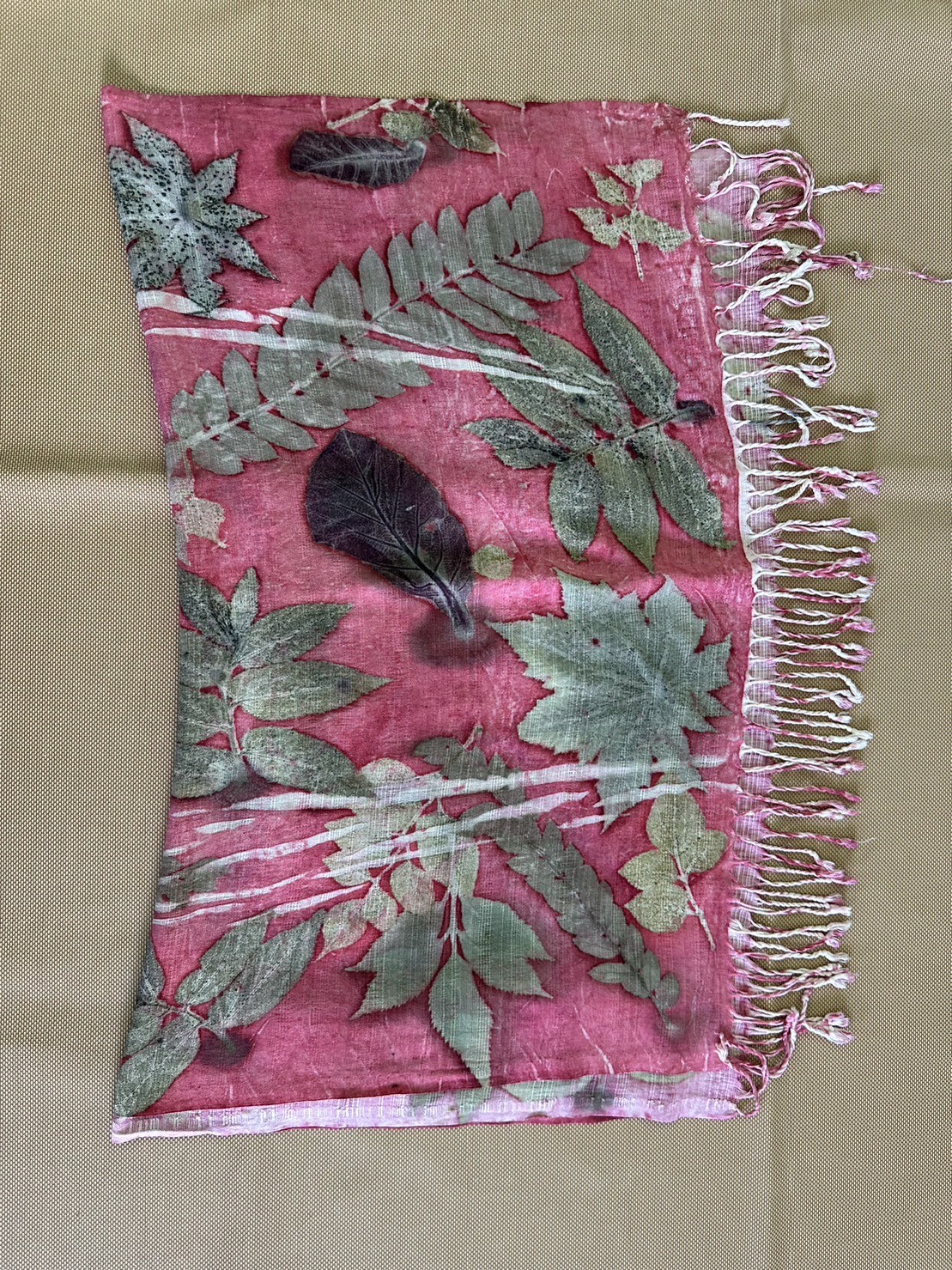 ผ้าพันคอ Eco print (สีชมพู)