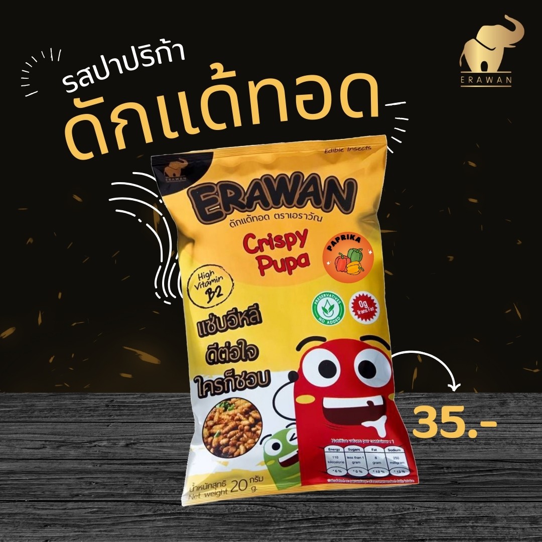 รสปาปริก้า ดักแด้ทอด (หนอนไหม) แมลงทอด ErawanCrispy