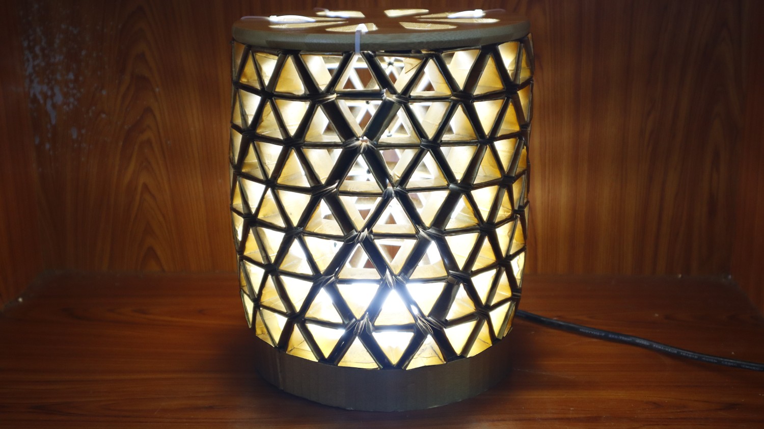 ผลิตภัณฑ์โคมไฟจากกล่องนมโรงเรียน ผลิตโดย นักเรียนโรงเรียนหมื่นศรีประชาสรรค์ ตำบลหมื่นศรี อำเภอสำโรงทาบ จังหวัดสุรินทร์